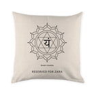 This cushion cover is centred around a beautifully intricate heart chakra design, underneath with the standard text ‘Heart chakra, reserved for [name]’ is written.