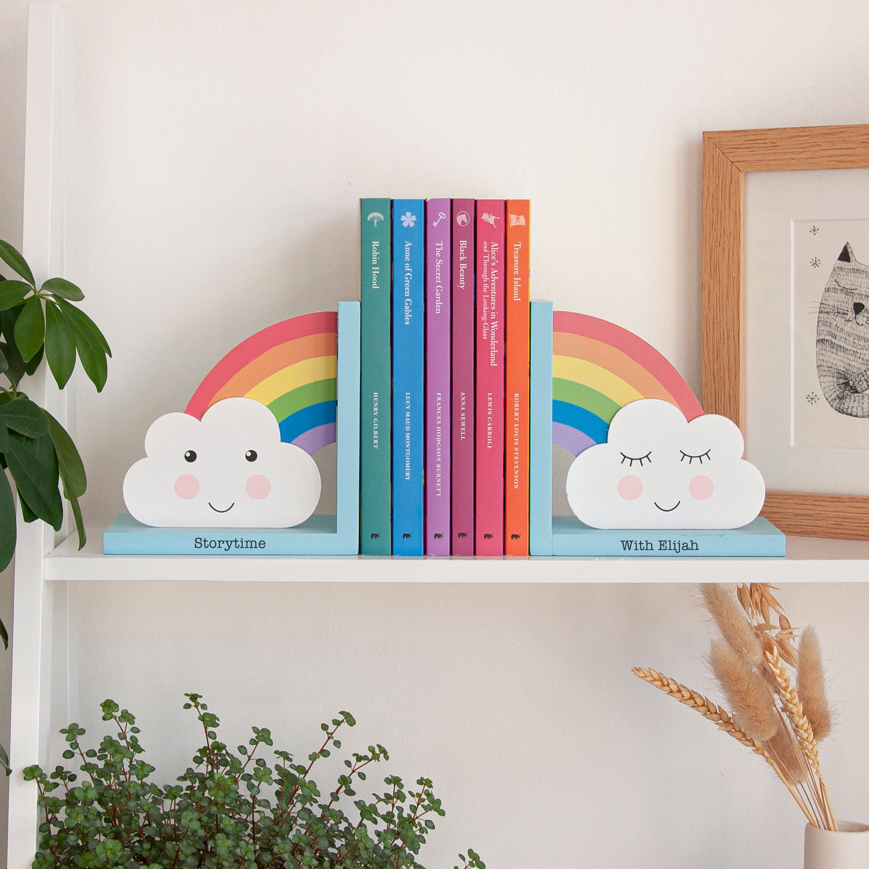 Are you looking for a stunning bespoke kids bookend for a little one who’s beginning to explore the magical world of limitless possibilities that books offer? You’ve come to the right place, with our sleek hand finished personalised kids bookends adorned with a wonderfully joyful rainbow and clouds design that’s sure to bring a smile to your child’s face. The perfect thoughtful stocking filler or as a one-of-a-kind birthday gift they’re bound to love.
