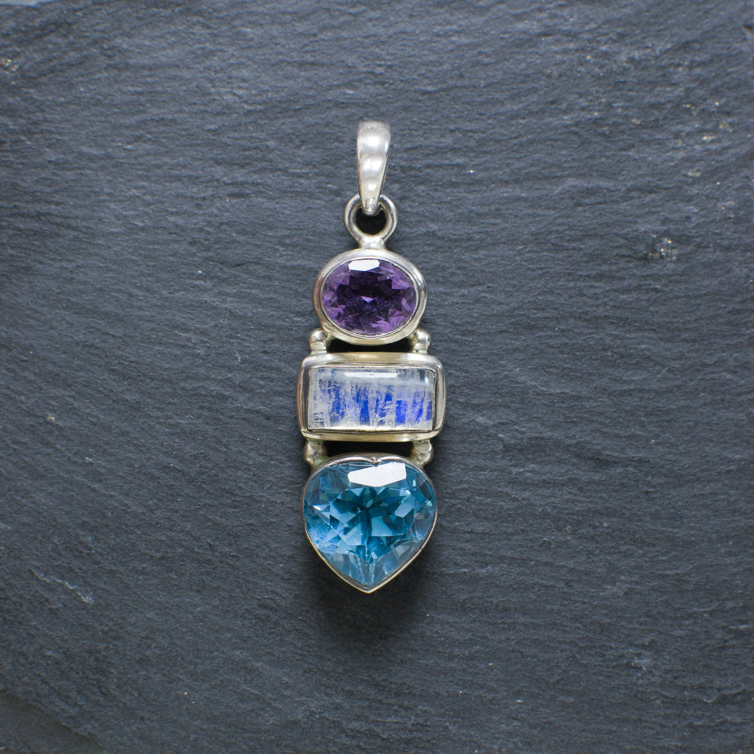 Luxury Amethyst, Moonstone and Heart Shaped Blue Topaz Gemstone Pendant