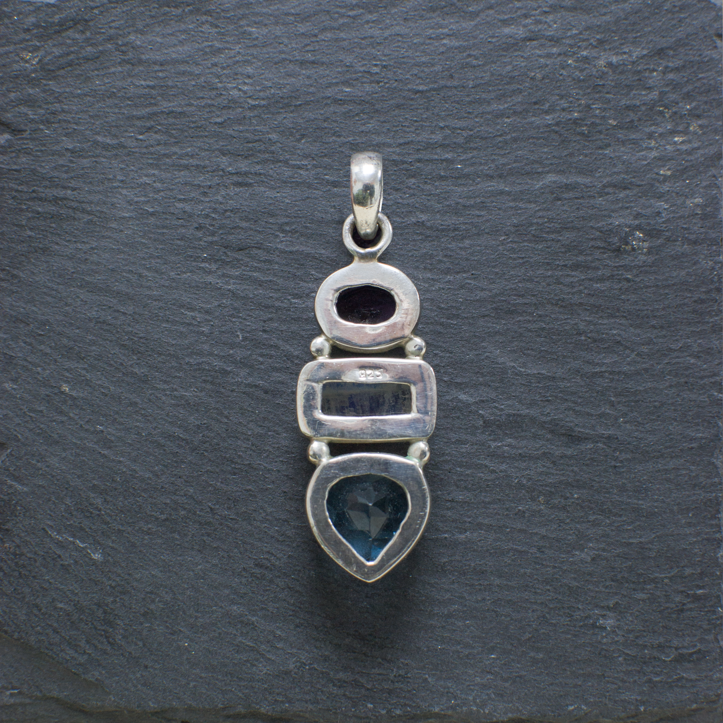 The three gemstone crystals featured in this pendant each carry their own rich symbolism, combining to create a piece that is both visually striking and deeply meaningful. The violet-toned amethyst crystal at the top has long been associated with clarity of mind, inner peace and spiritual balance, symbolising calm, wisdom and protection.
