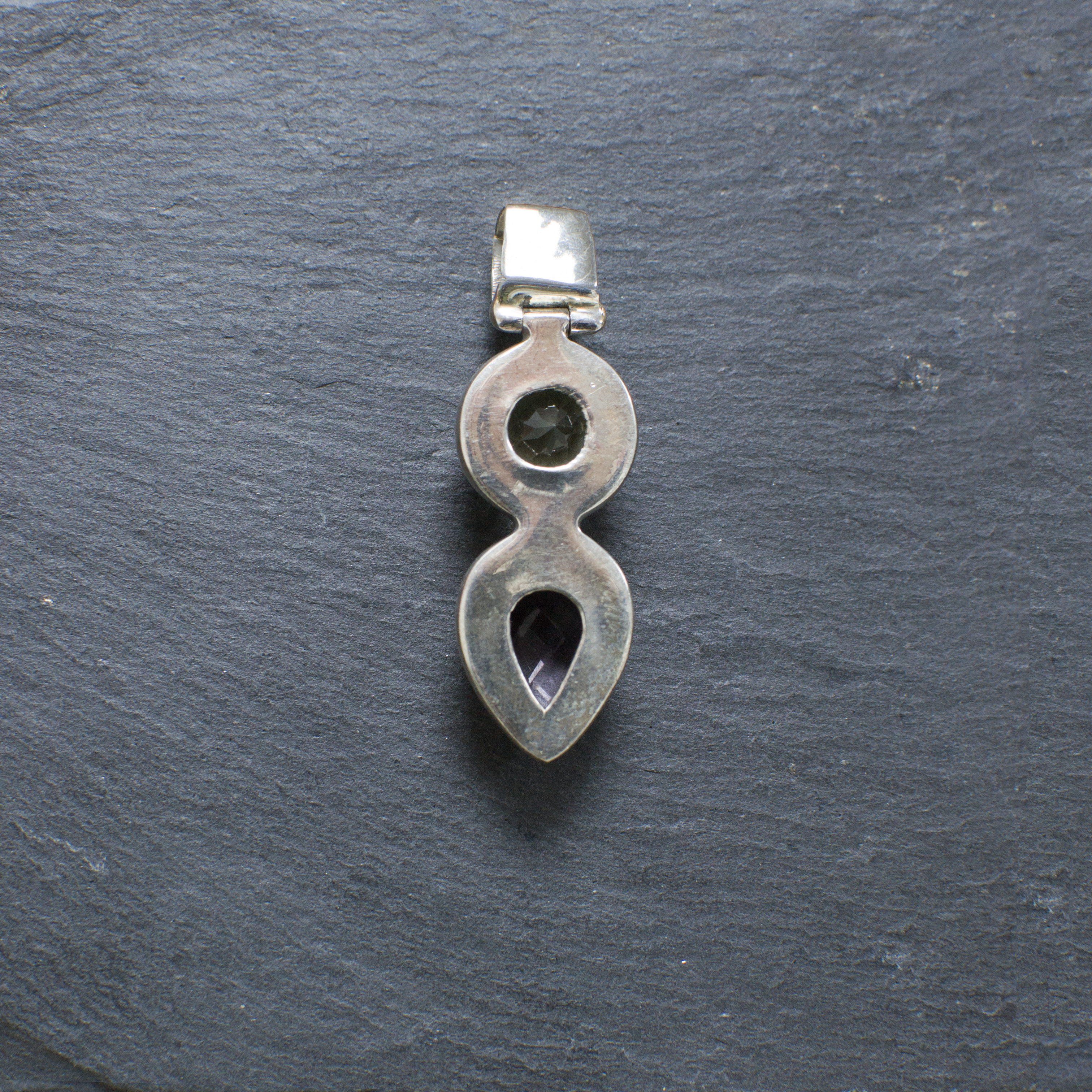 Sterling Silver Pendant with Green Topaz and Amethyst Gemstones