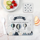 Fly amongst the clouds every time you have dinner with our fun and beautiful personalised children's hot air balloon placemat set. This luxurious tableware gift will make a great birthday or Christmas present for an adventurous child who dreams of flying high. This amazing gift will protect your dining table from dinner time accidents, messes and marks, plus its strong and easy to wipe clean, making it perfect for even the messiest of eaters.