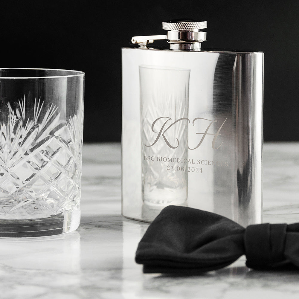Stay hydrated in style with our collection of personalised hip flasks. Our hip flasks come in a range of designs, from vintage motifs to simple monograms and modern illustrations, so you’re sure to find the perfect accessory to suit them. They make wonderful wedding gifts, birthday gifts, or Father’s Day gifts, and personalising it adds that extra meaningful touch that will make it something they’ll treasure forever.