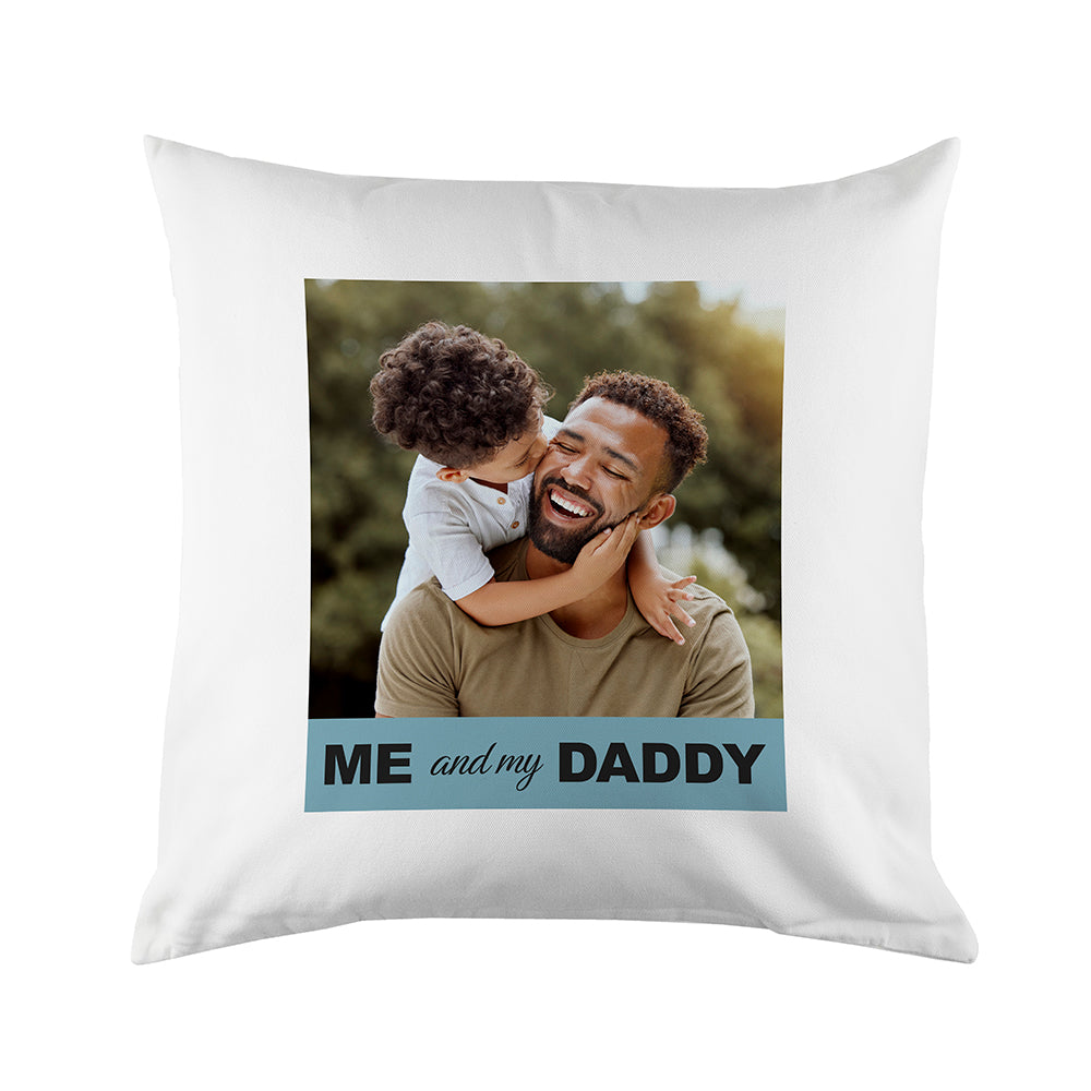 Please ensure that the photo you upload is as high res as possible. The higher the quality of image, the better your cushion cover will come out; every pixel counts. ‘Me and my Daddy’ comes as standard text.