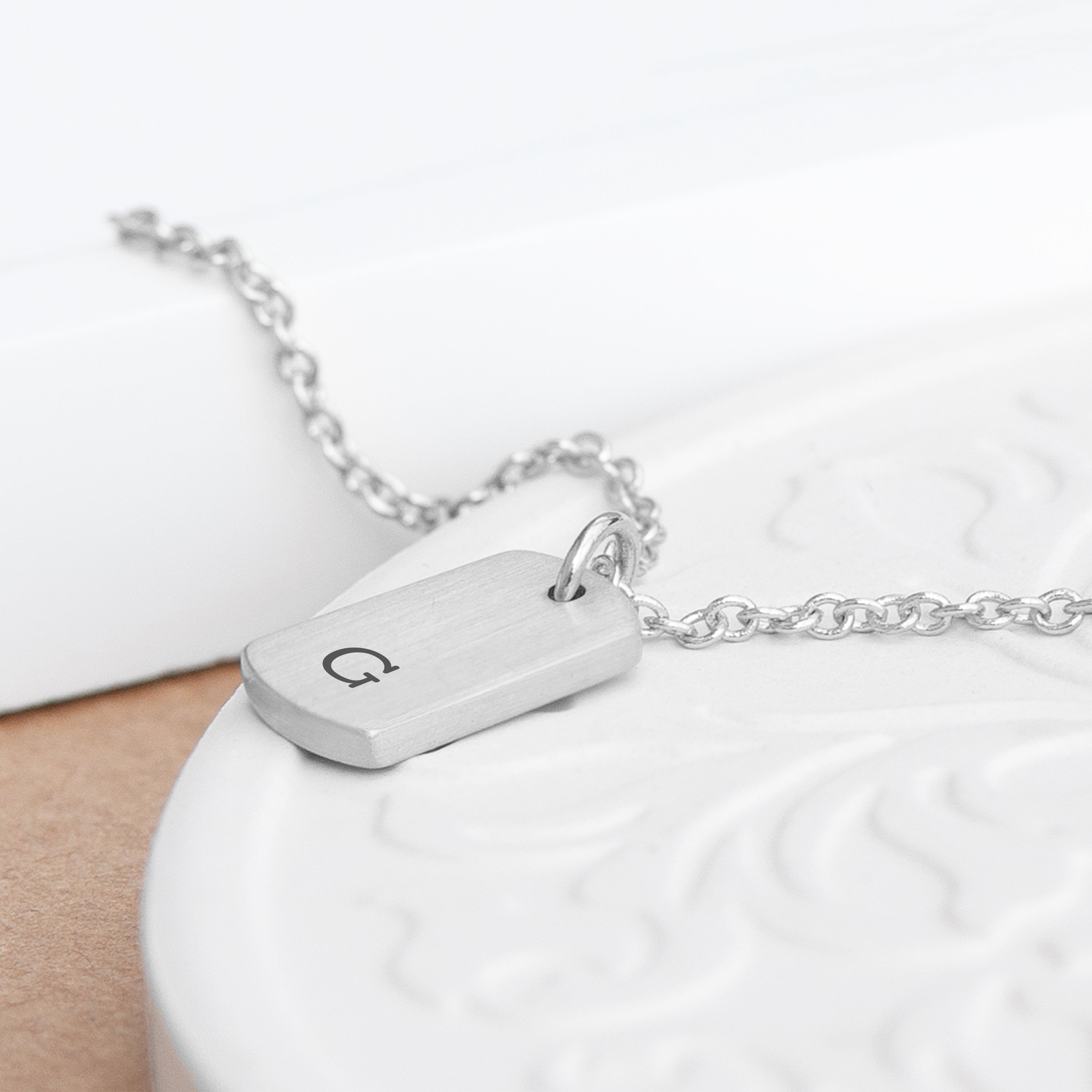 Its sleek, minimalist design - with matching silver chain and tag pendant - makes it a versatile accessory she can wear every day or for special occasions. Speaking of the tag, this can be personalised with an initial of your choice, creating a truly unique and special necklace that will hold a special place in her heart.