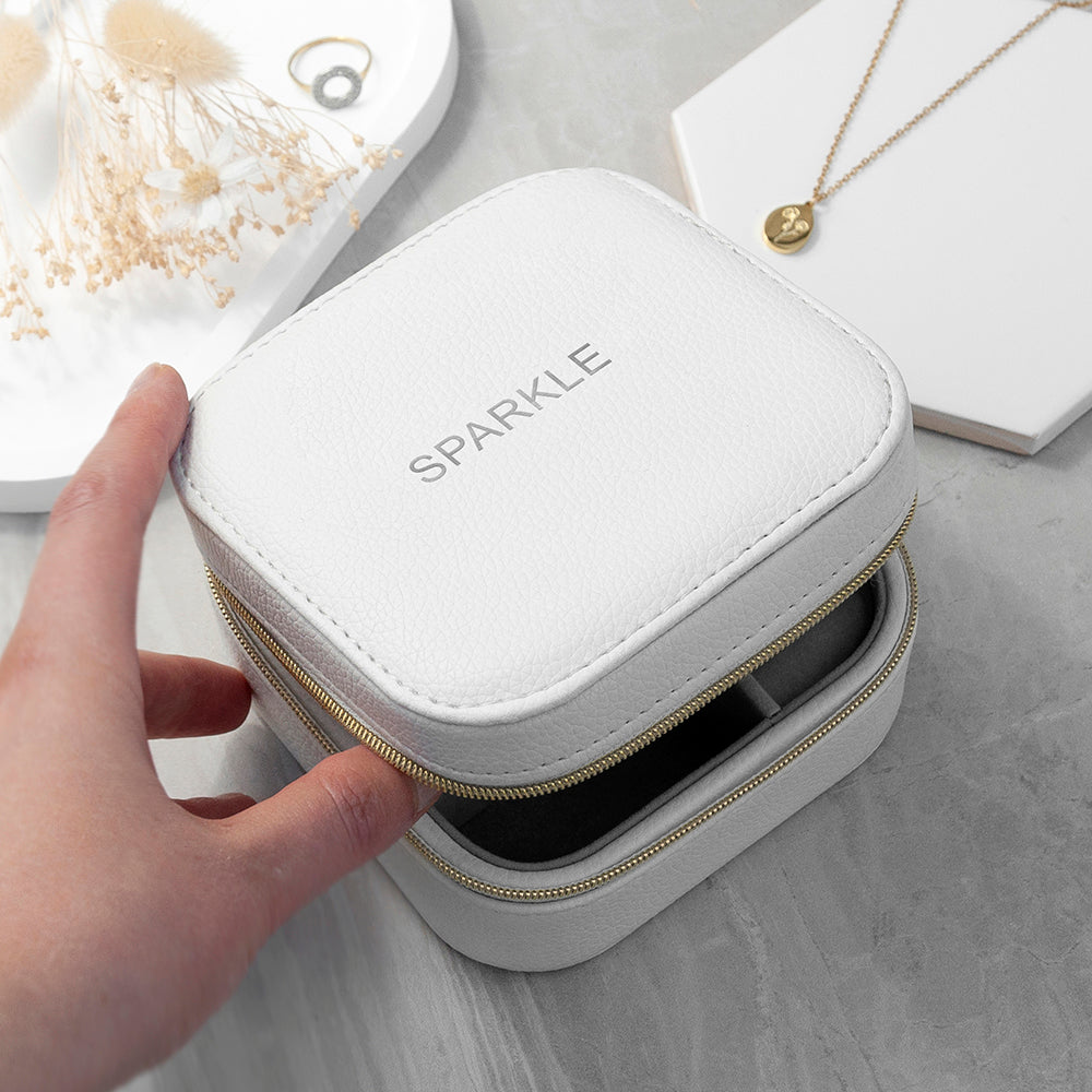 Personalised Bold Message White Travel Jewellery Case