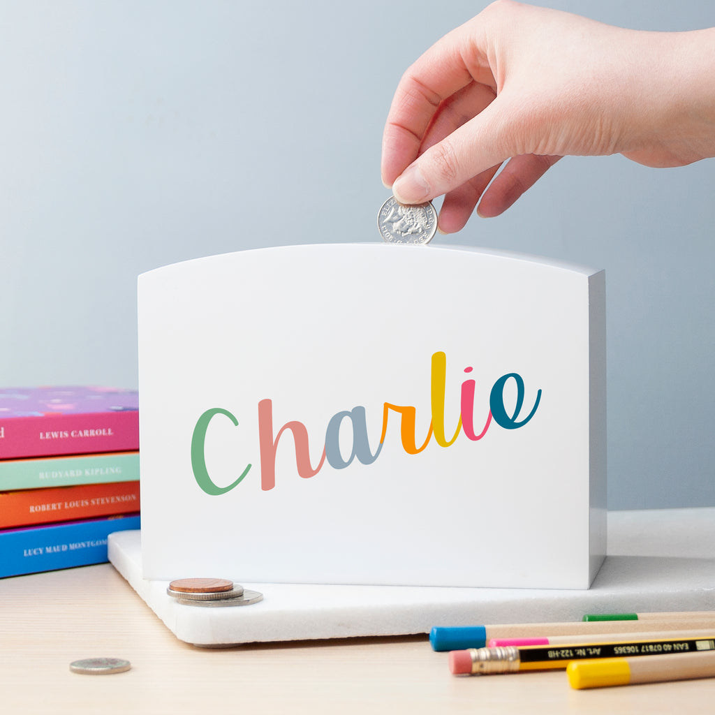 What’s more, your little one’s name will be written in bold, bright and colourful letters prominently on the side of their money box by our expert team of artisan makers, so everyone will know whose coins are held within.