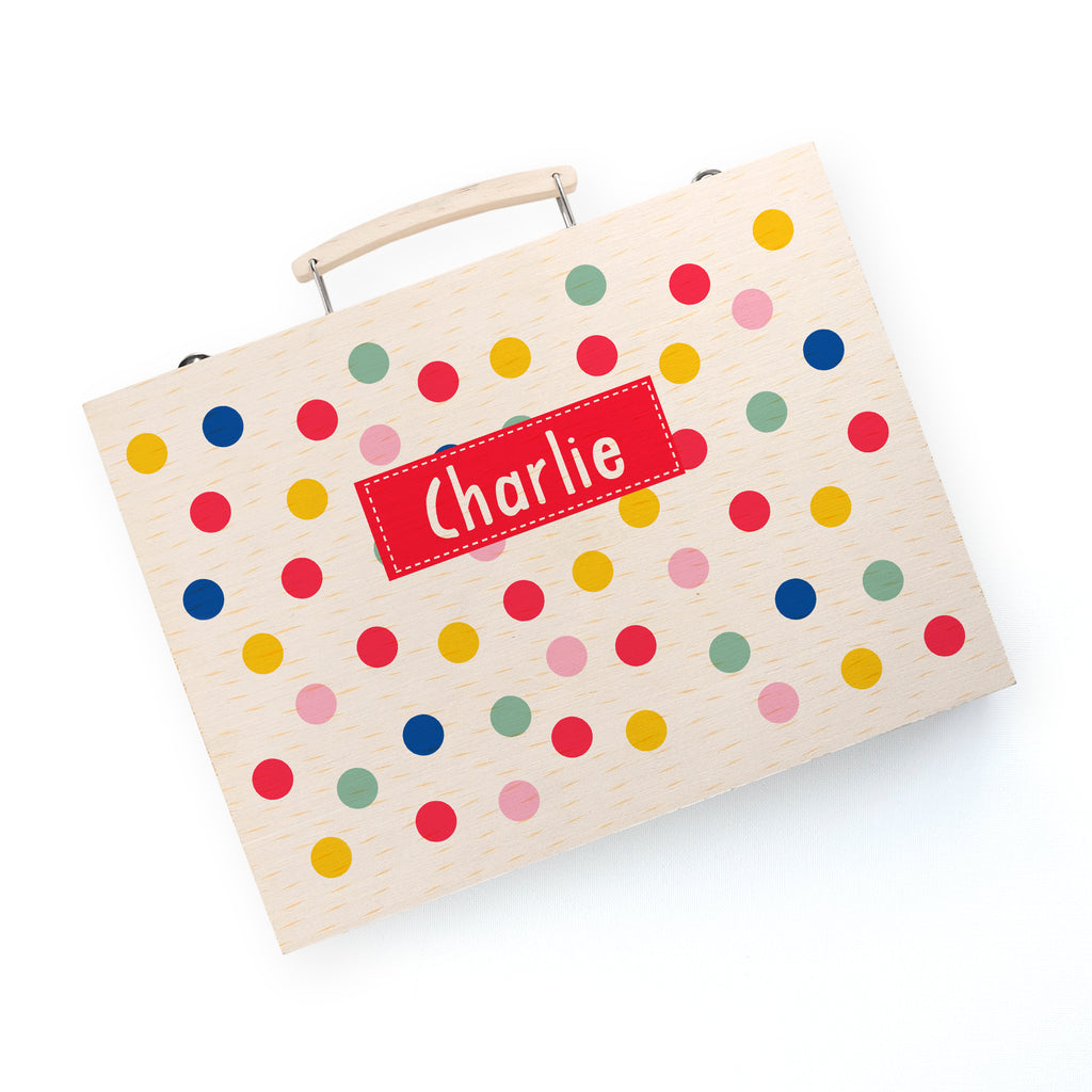 That’s not all! This set comes with a personalised touch, making it extra special for your little artist. Add your loved one’s name and our wonderful team of artisan creatives will do the rest, printing the colourful polka dot themed design onto the lid of their wooden colouring set box to the highest standard, with the result being a truly standout gift that they'll treasure long after they outgrow this set.