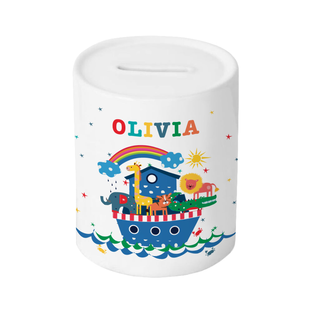 Ahoy, young savers! Embark on an enchanting voyage through choppy financial waters with our adorable Personalised Noah's Ark Money Box! This ceramic piggy bank is the ultimate birthday, Christmas or Christening gift for kids that they’ll cherish for years to come - even as they get a bank account of their own.