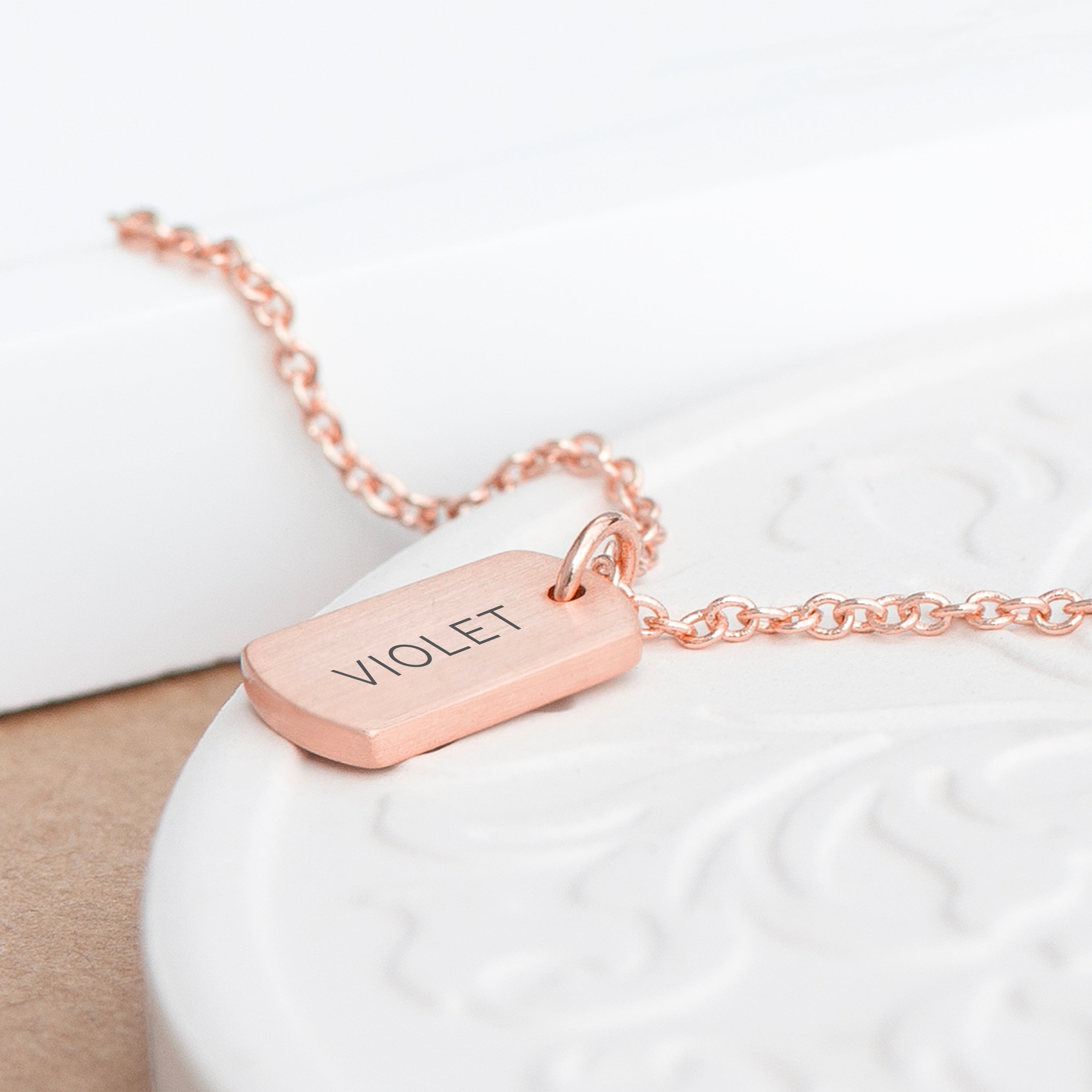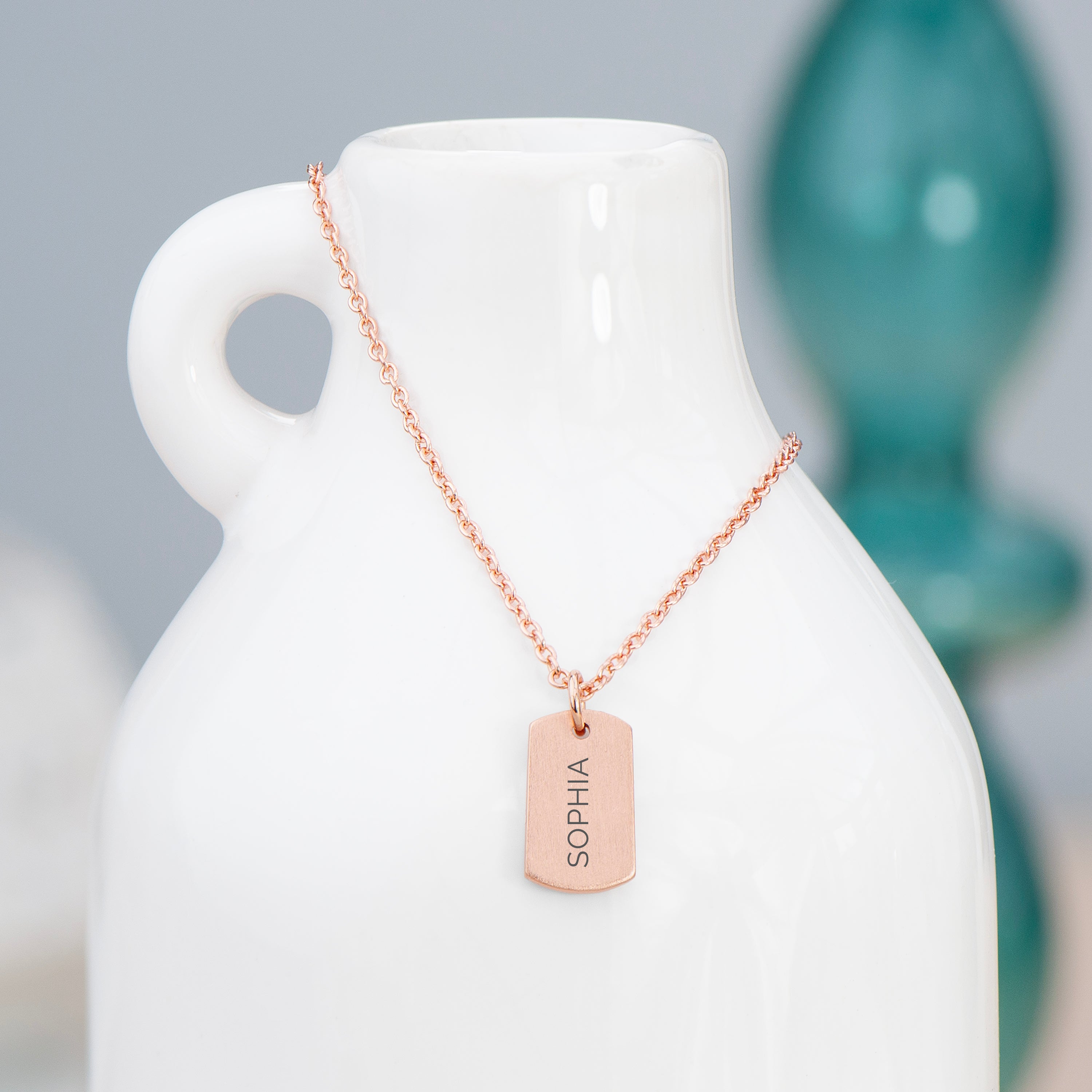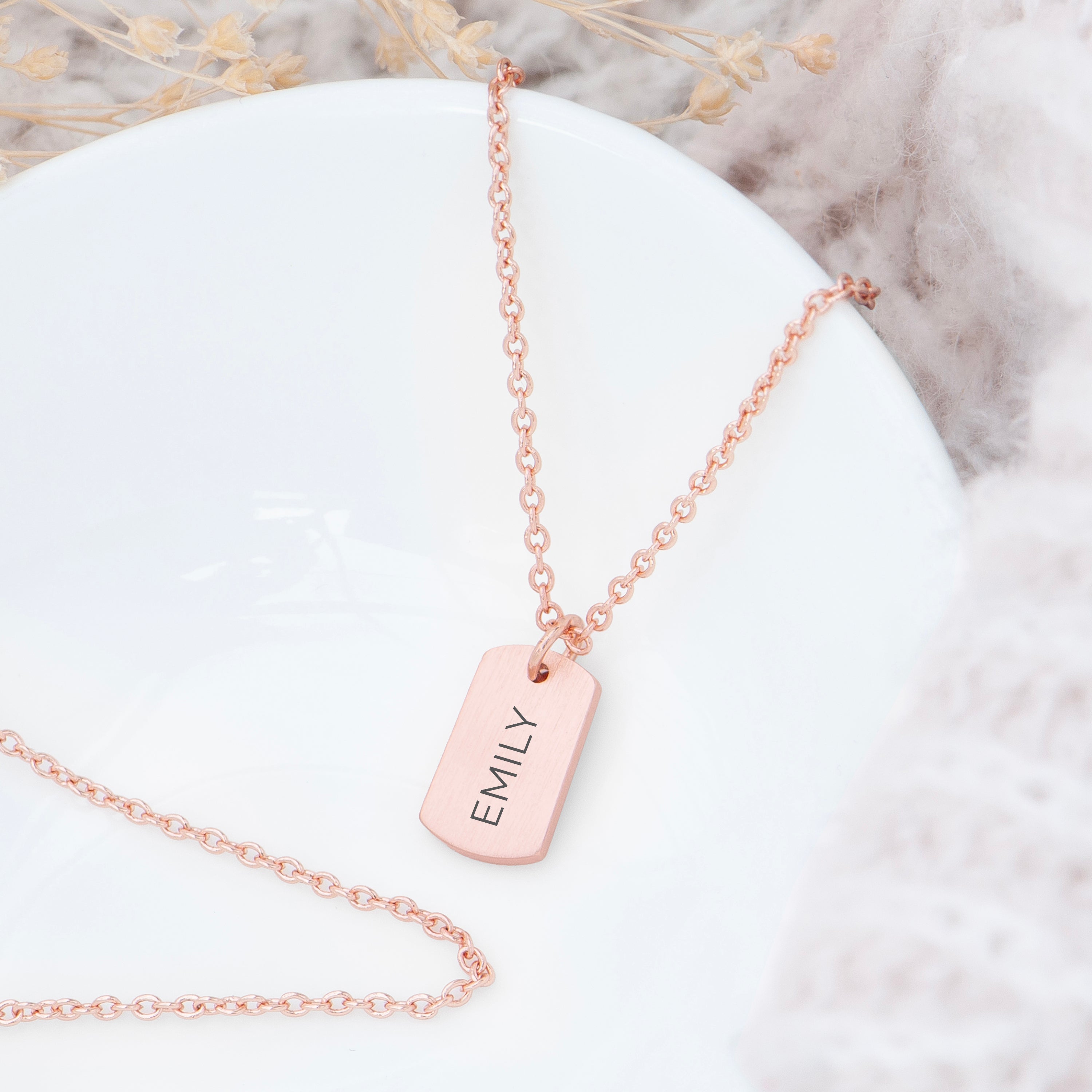Surprise her with an elegant Personalised Rose Gold Name Tag Necklace; a meaningful accessory that combines effortless style with the sentimentality of a one-of-a-kind personalisation. Perfect for birthdays, Valentine’s Day, or Christmas, this stunning piece of jewellery features a sleek rose gold finish.