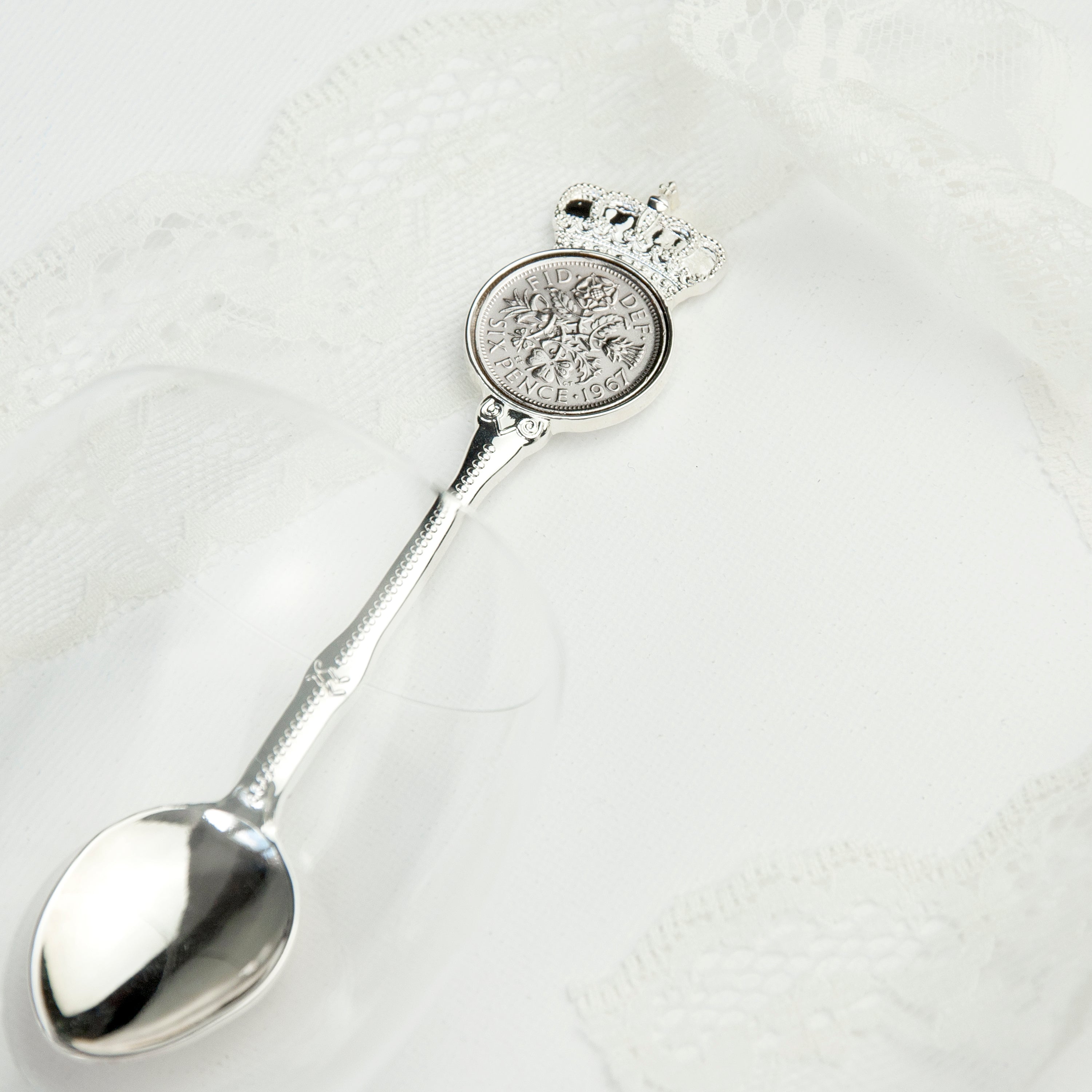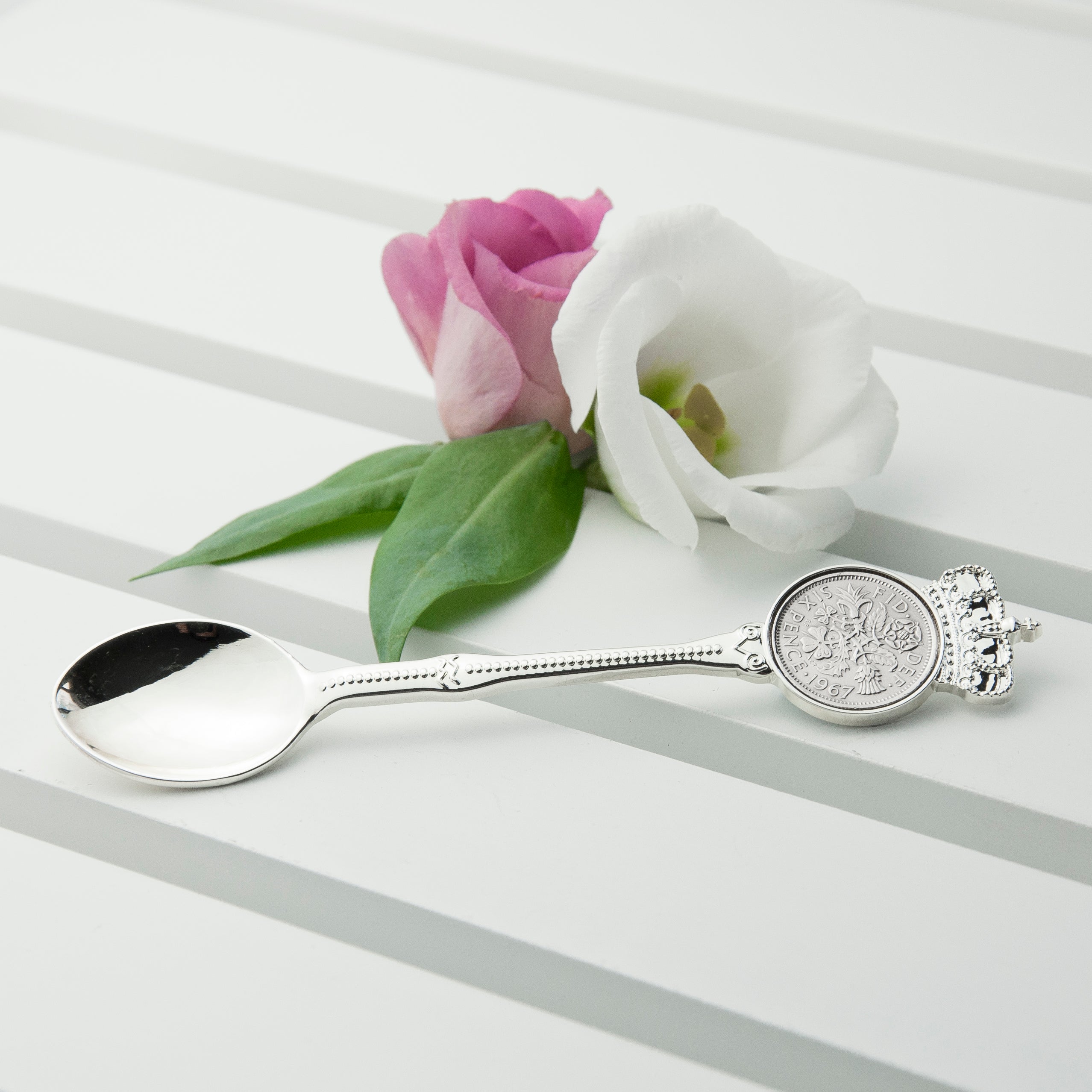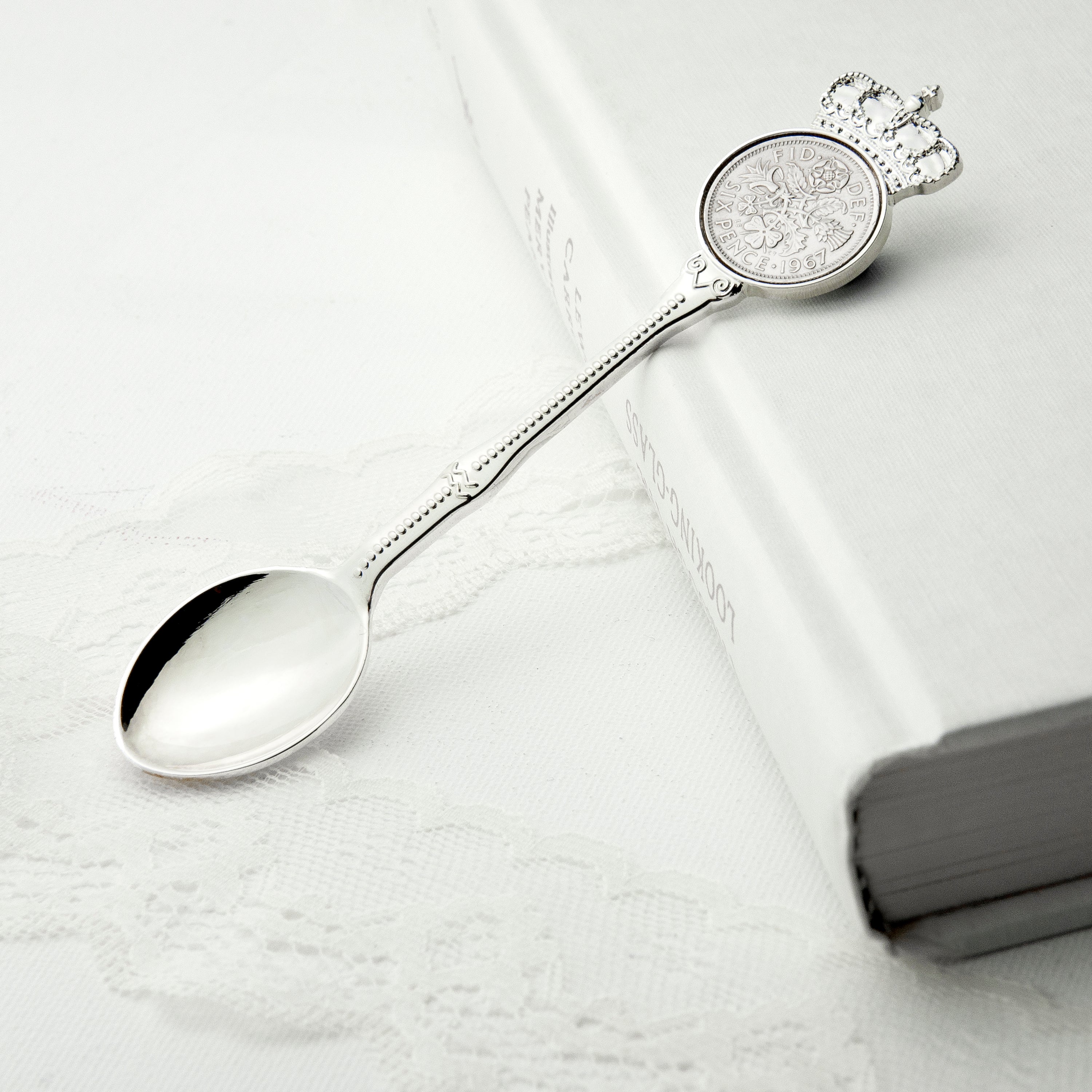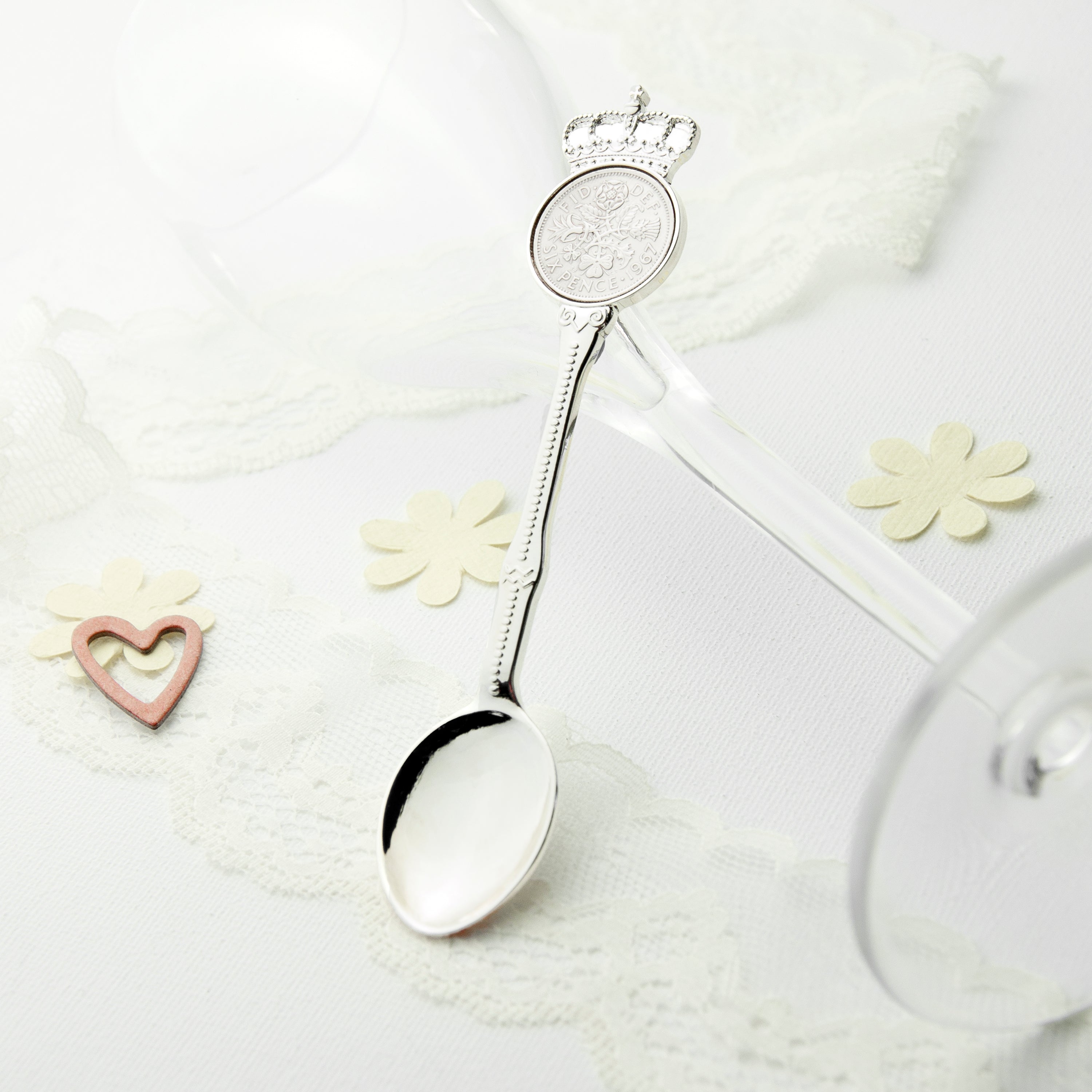 Personalised Silver Plated Lucky Sixpence Teaspoon