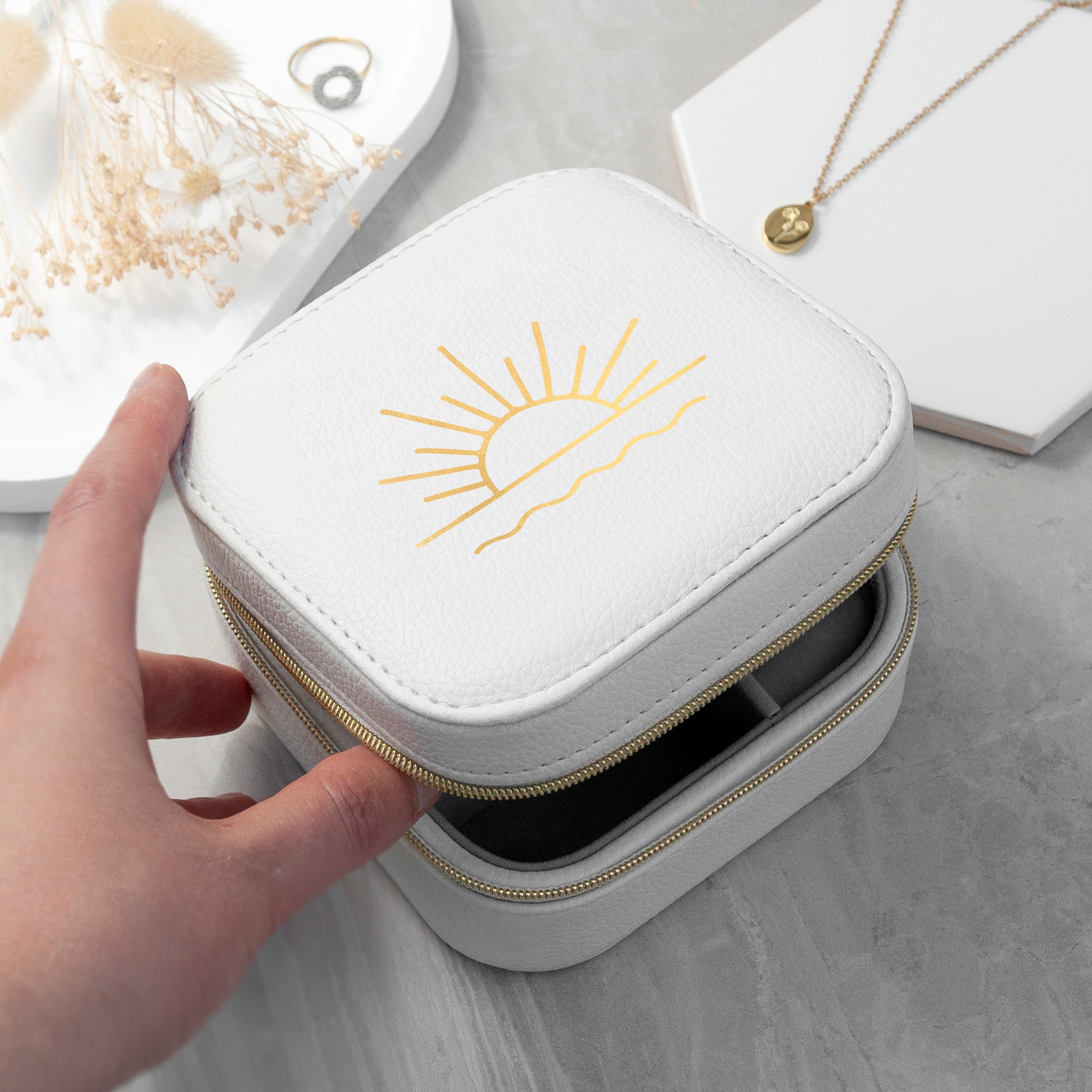 Sunset White Square Travel Jewellery Case