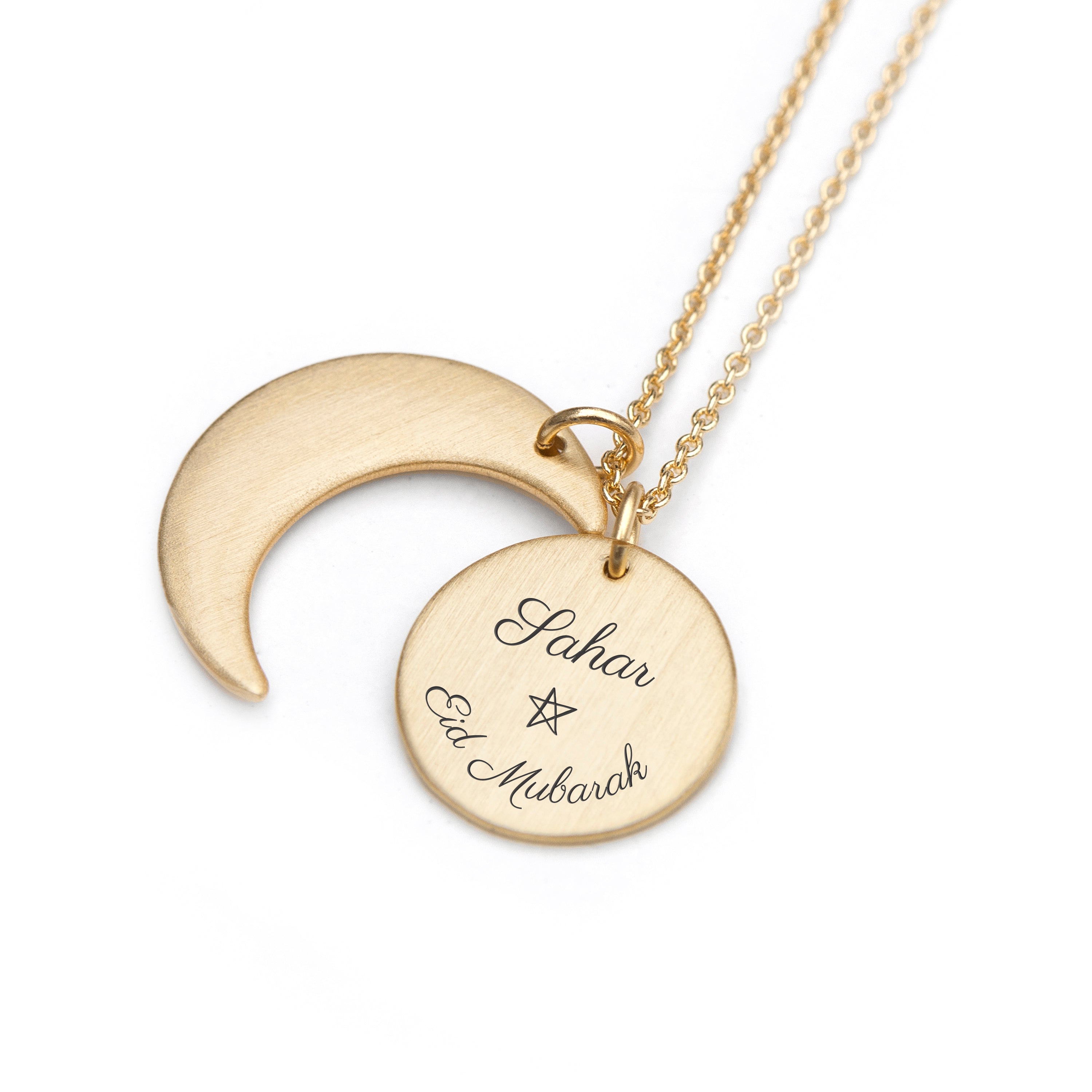 Personalised Eid Mubarak Matte Moon and Sun Necklace