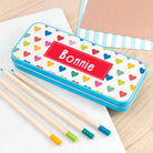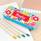 Personalised Girl's Patterned Blue Pencil Case Tin