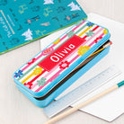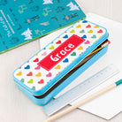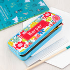 Perfect for back to school preparations, our stylish Personalised Girl's Patterned Blue Pencil Case Tin will make an excellent Christmas or birthday gift. Whether she's a student, artist, or simply loves stationery, she'll appreciate this thoughtful present. Ideal for storing and protecting your loved one’s school stationery essentials, she’ll love showing her pencil case tin off to friends at school.
