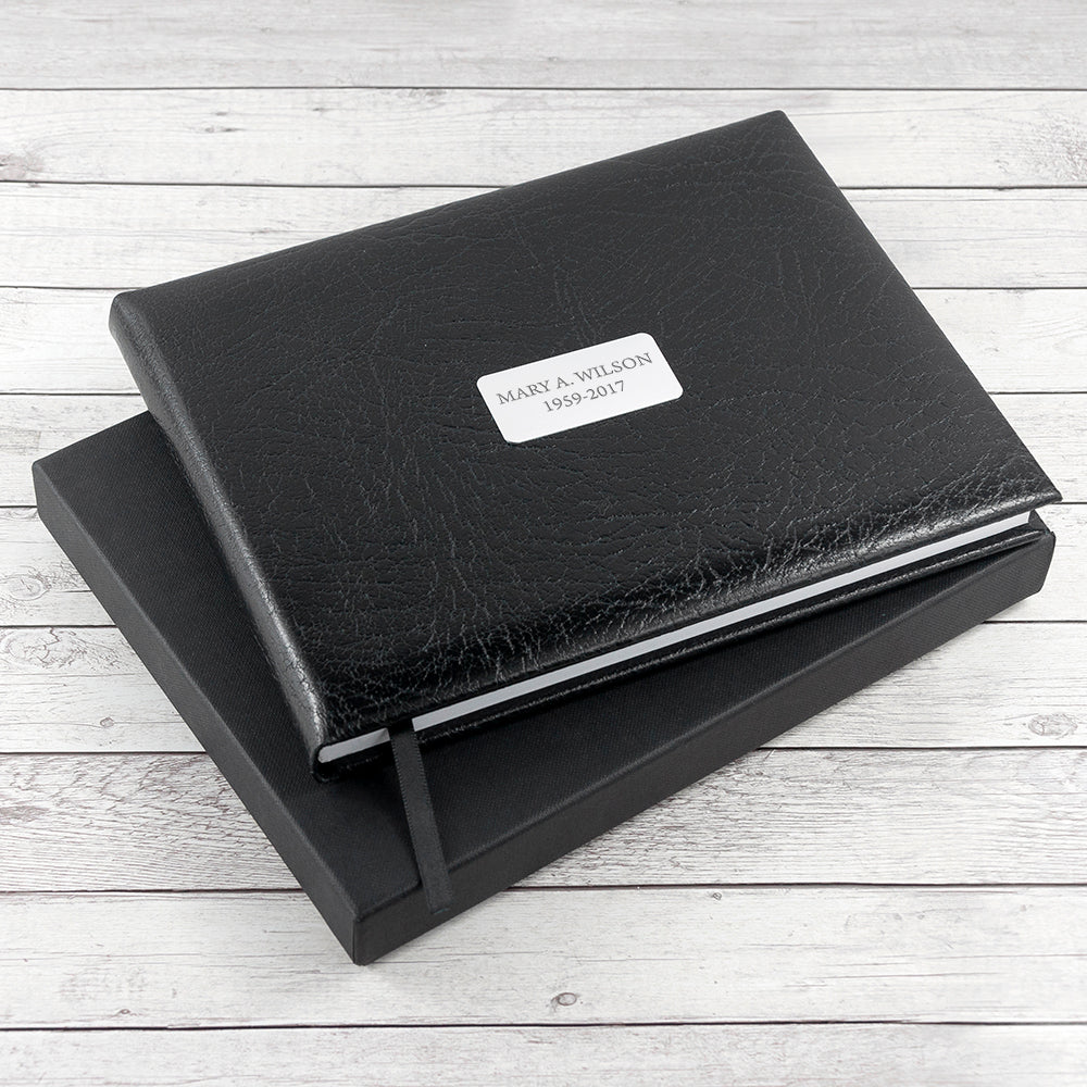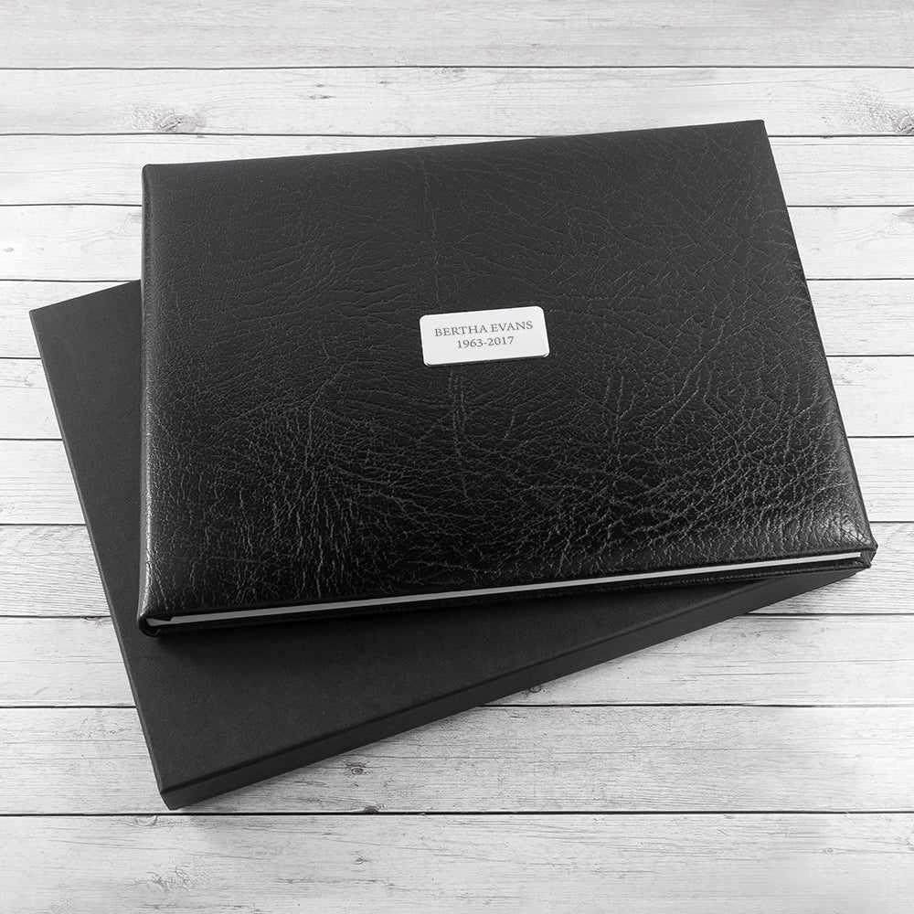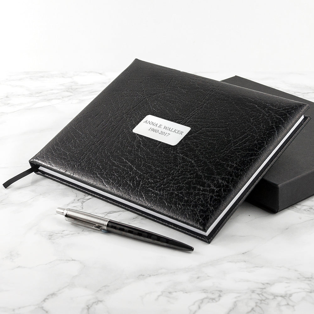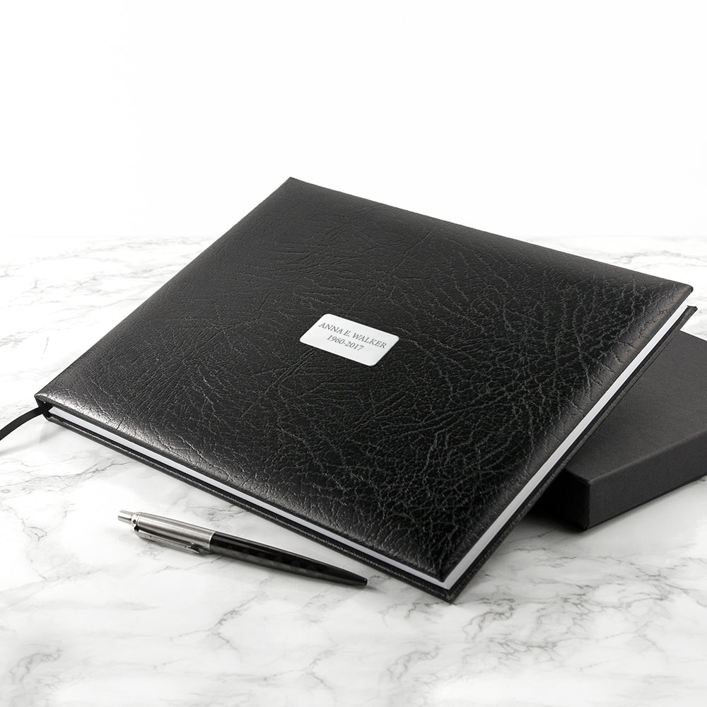 For that added touch of quality on this difficult occasion, their black leather memoriam book will come with 64 pages of thick premium quality 120gsm paper and will be beautifully and tastefully presented in a black gift box as standard.