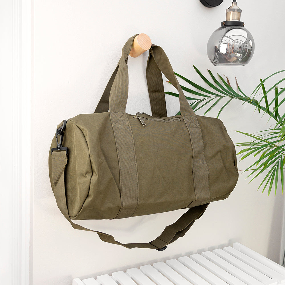 This stylish vintage canvas duffle bag is available in three beautiful colours: Black (with grey straps), Military Green and Grey (with black straps).