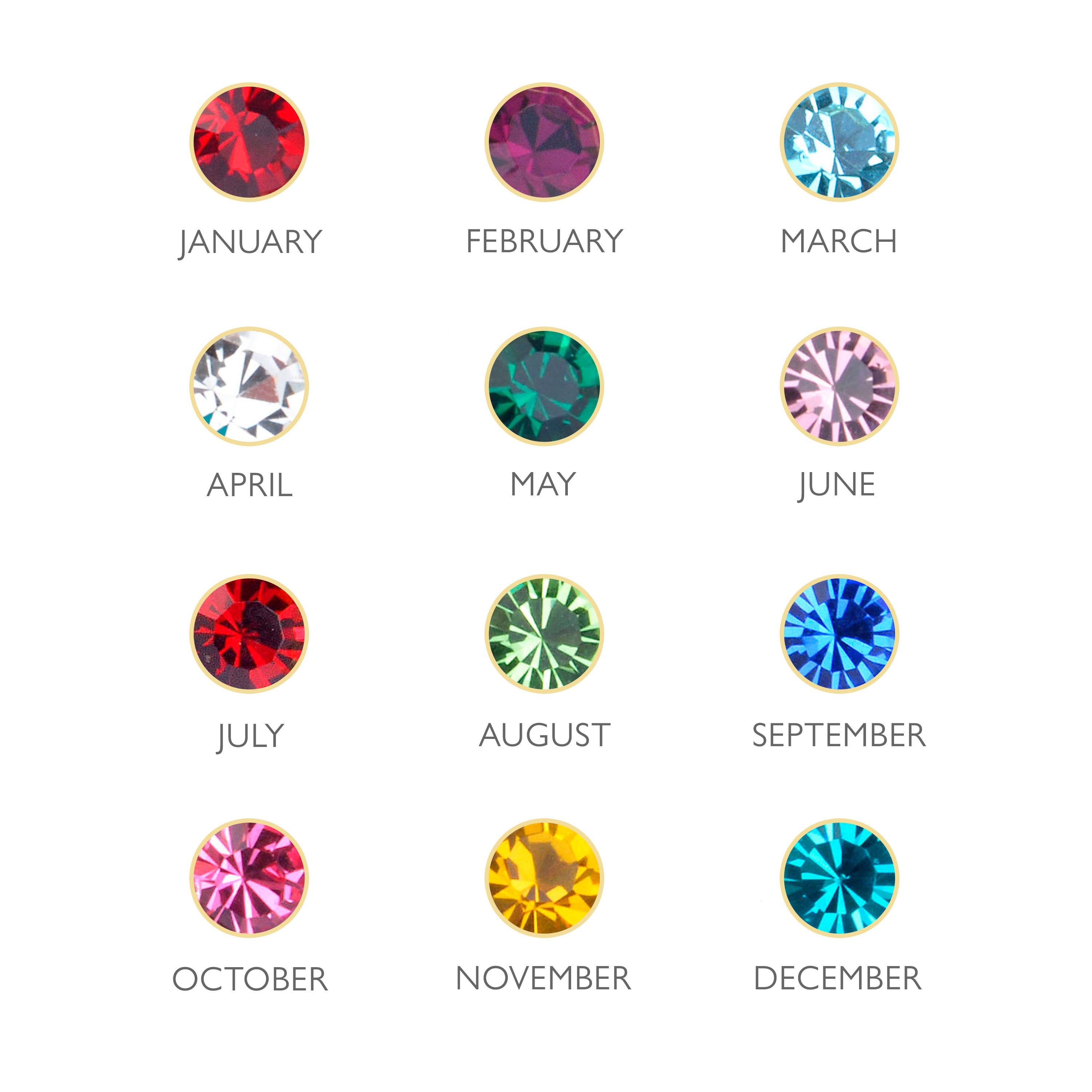 Our Swarovski crystal bracelets are also available in silver. What makes this necklace truly special is the meticulously engraved birth month flower illustration and Swarovski crystal birthstone. Here’s a quick guide to the birthstones and flowers: