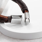 Rustic charm, timeless style and sentimentality synthesise to form our Personalised Men's Brown Leather Twisted Cord Bracelet. The rich, earthy tones of the brown leather and unique twisted black cord combo pair beautifully with any outfit; from everyday jeans and t-shirts to smart-casual looks. It's versatile enough to be worn daily, yet special enough to feel like a treasured keepsake.