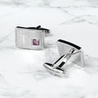 Sophisticated, timeless and personal, these sumptuous Personalised Rhodium Plated Birthstone Crystal Cufflinks are the perfect finishing touch to any gentleman’s formal attire, offering a unique way to celebrate a birthday, anniversary or special occasion. Crafted with precision and plated in light brushed rhodium, each cufflink is rectangular in shape with gently rounded corners, exuding a contemporary elegance that balances modern style with classic refinement. Hand set in the bottom right hand corner of each piece, catching everyone’s attention, lies a stunning square-cut crystal, available in twelve distinct colours to represent the birthstones of each month of the year.