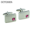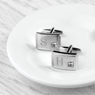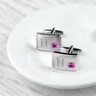 Personalised Rhodium Plated Birthstone Crystal Cufflink Set