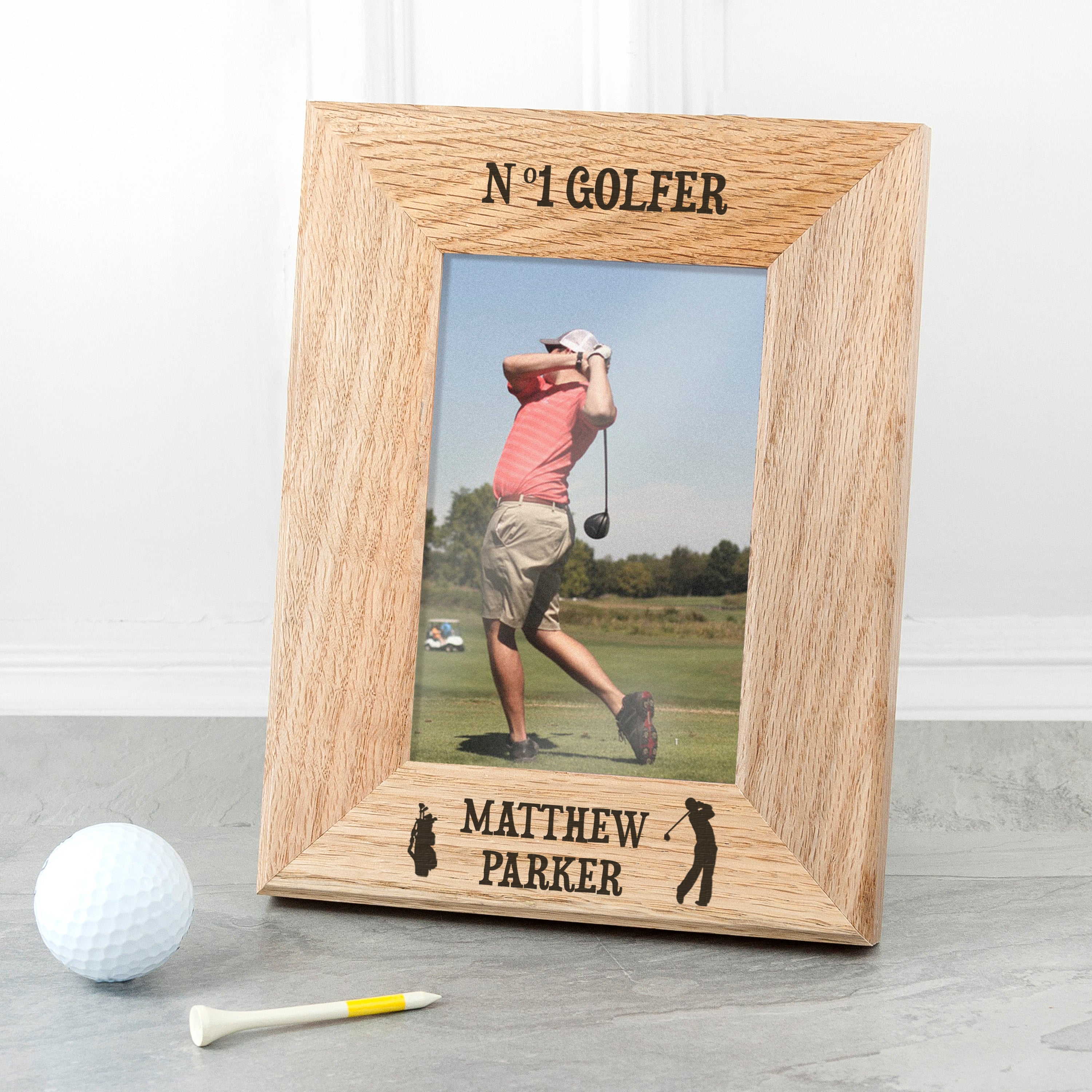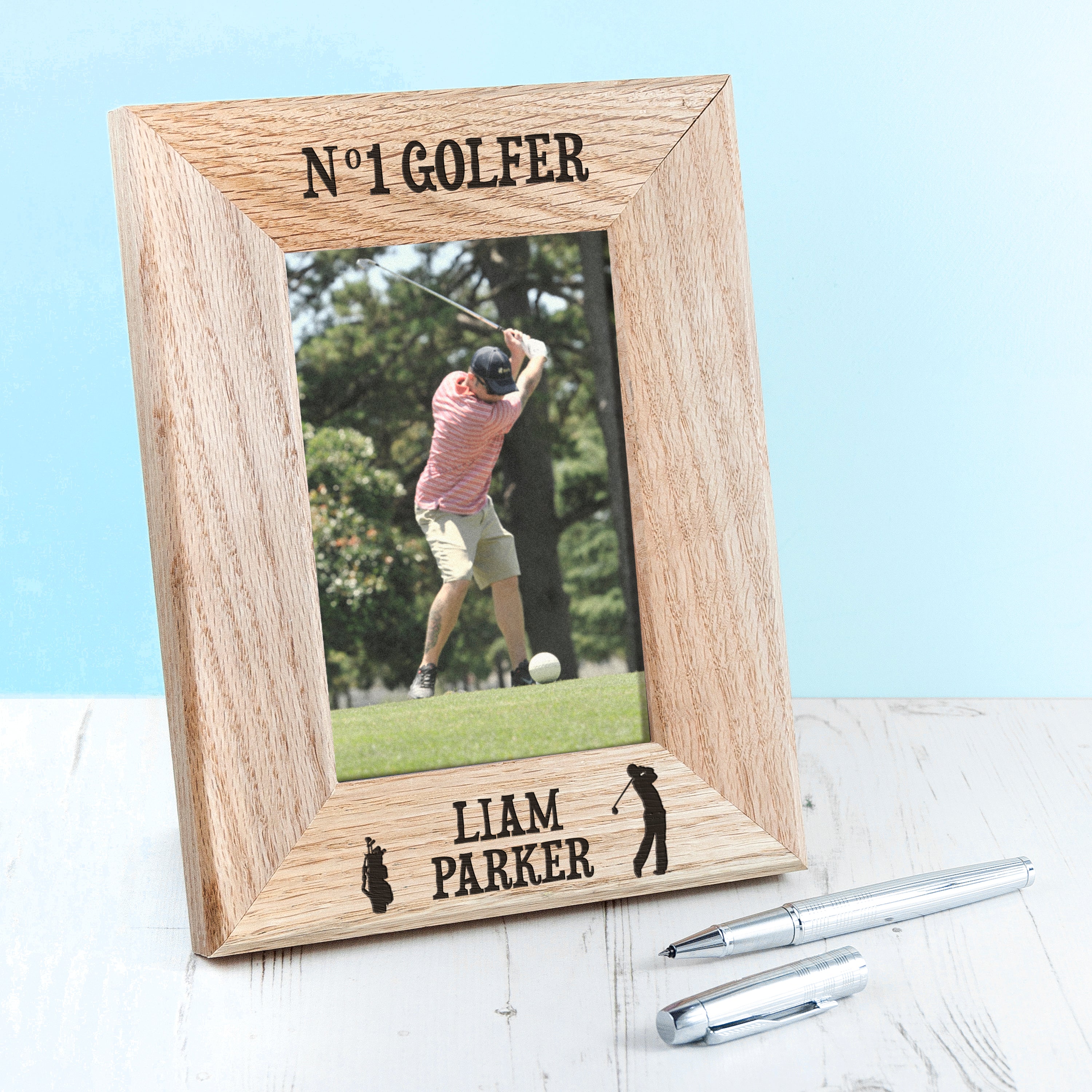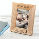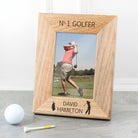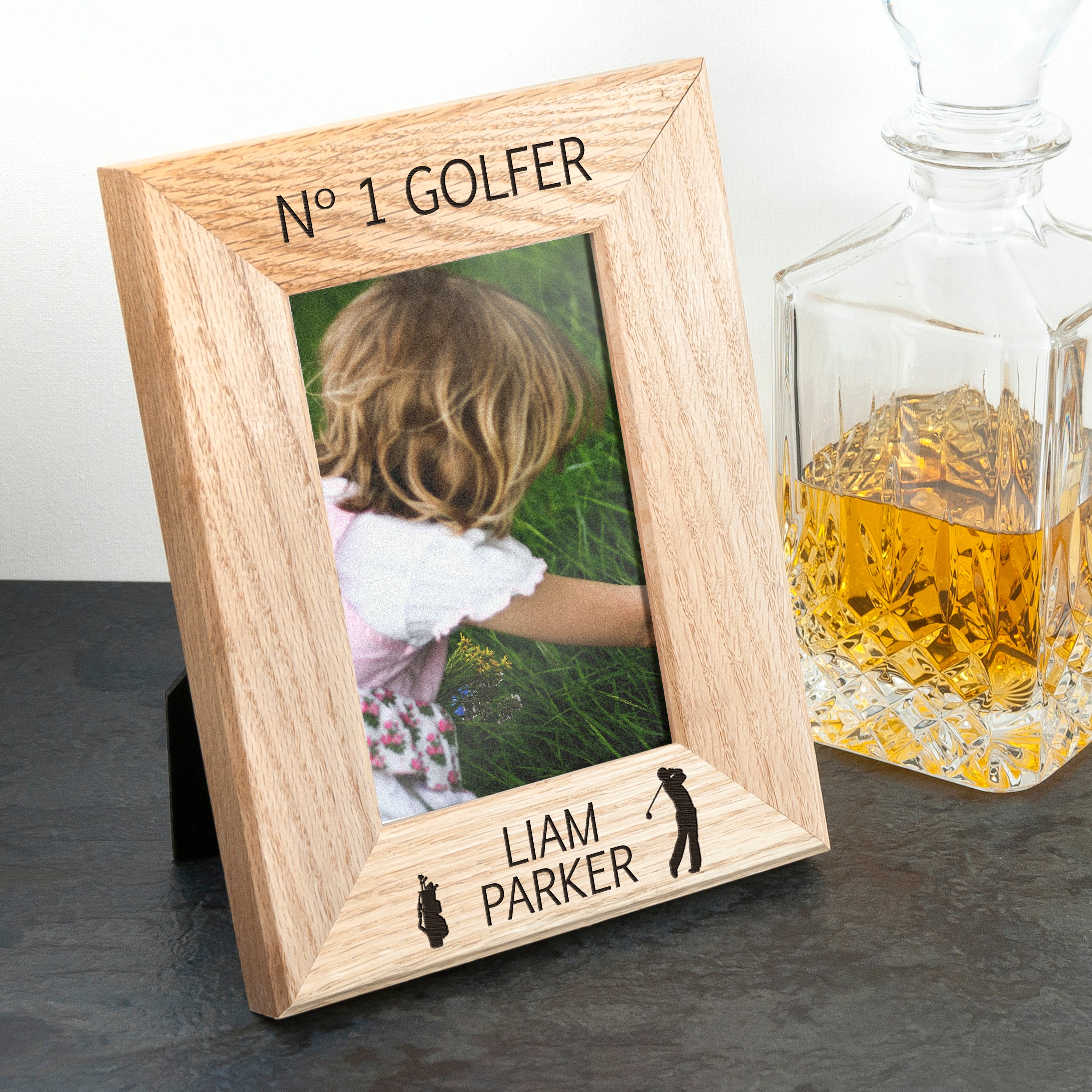 Your loved one’s solid oak photo frame comes with the words 'No1 Golfer' as standard text alongside icons of a golf bag and golfer taking a shot, which will be placed either side of your personalisation.