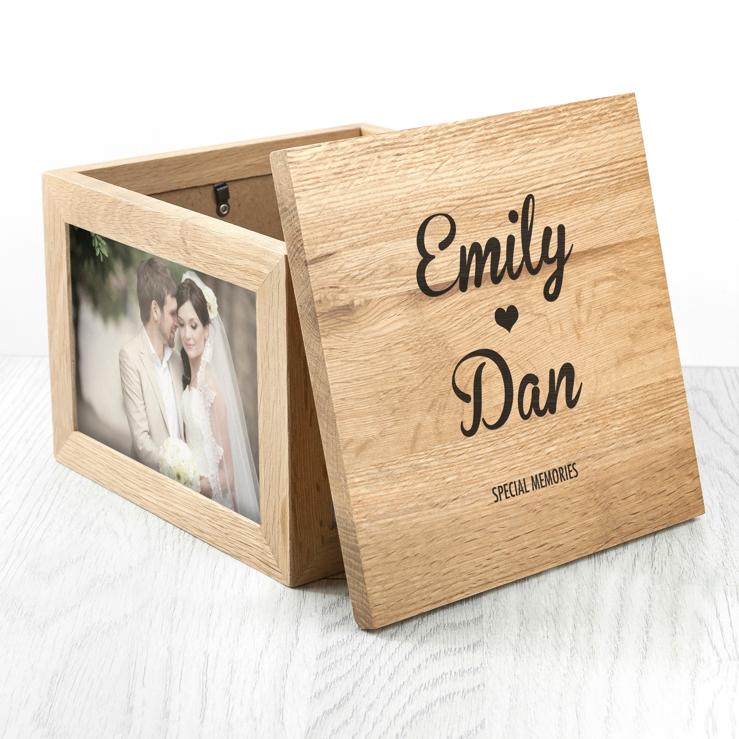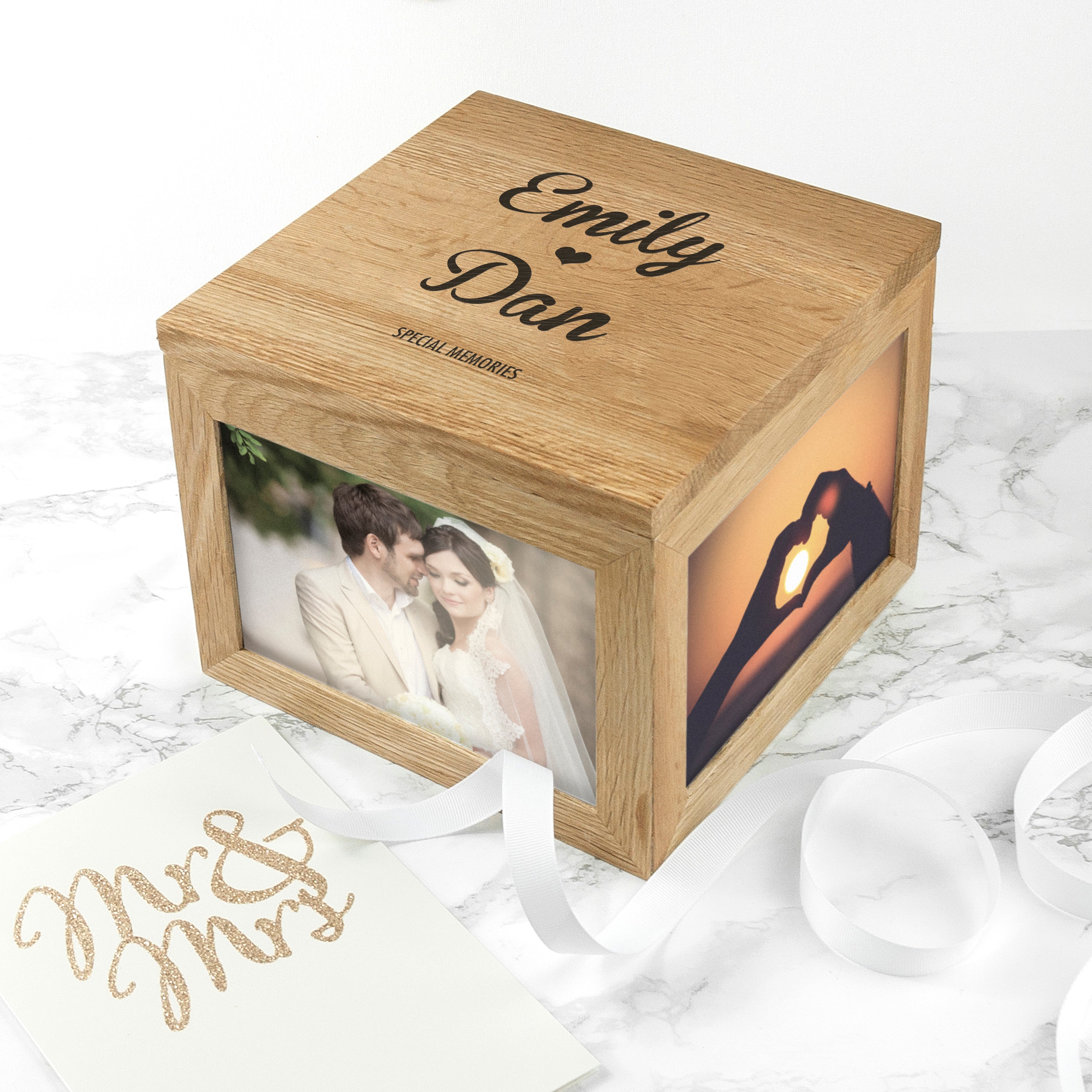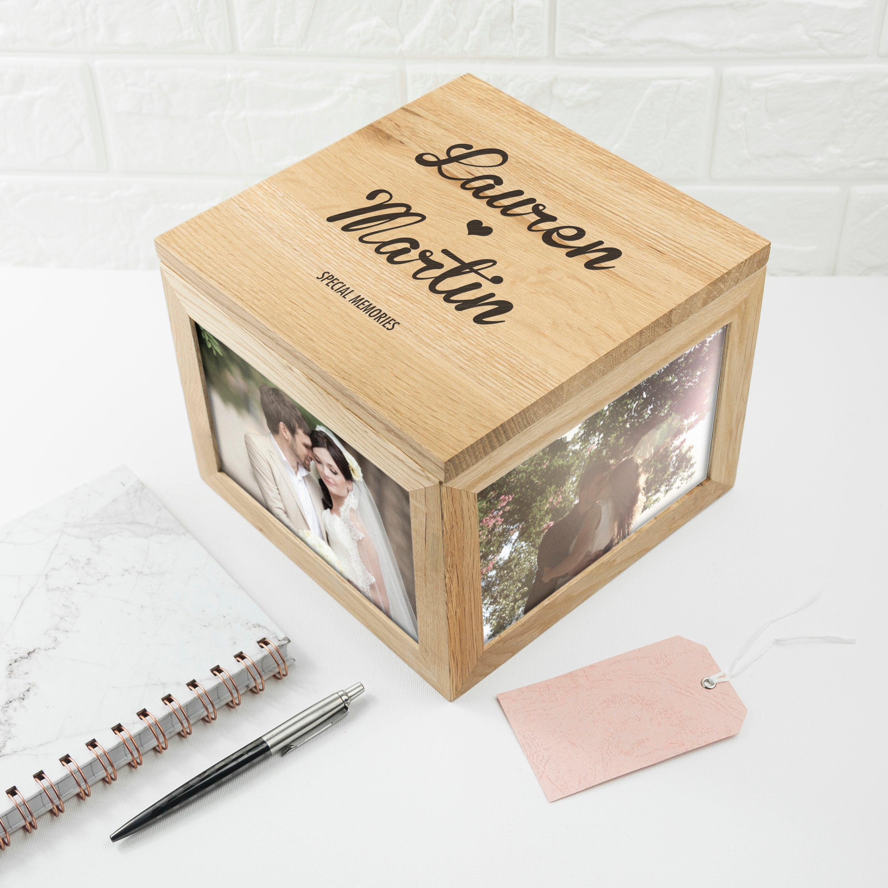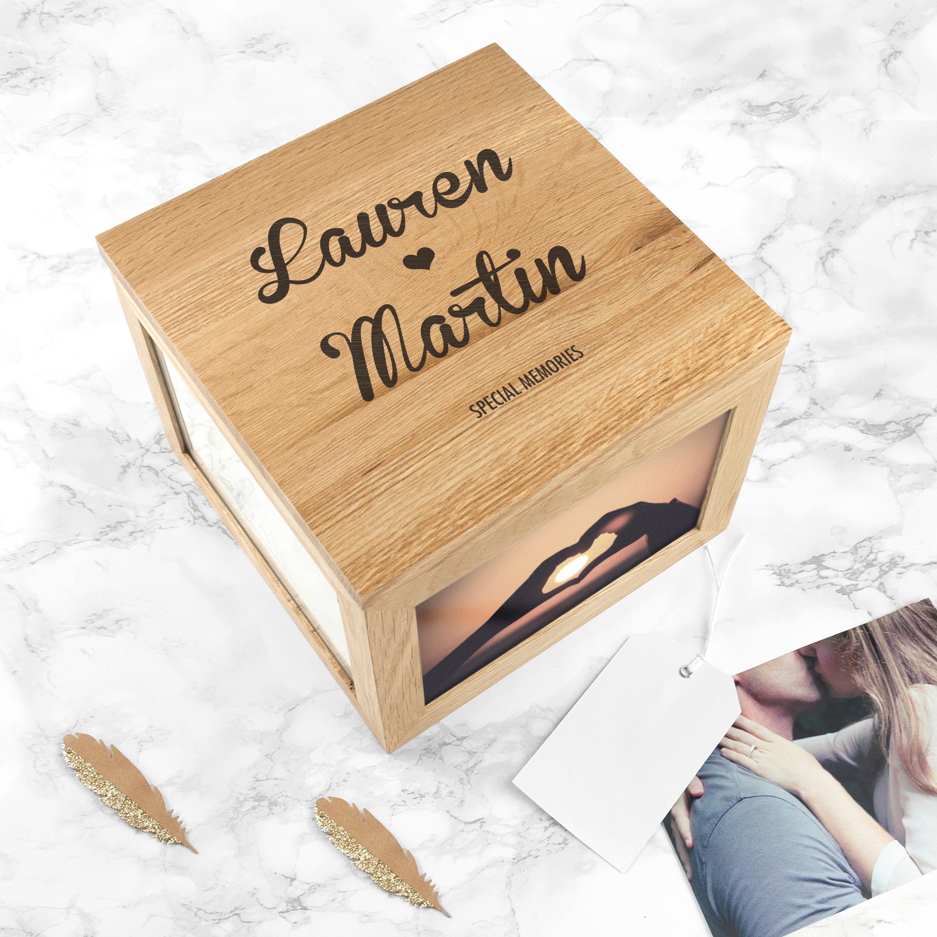Personalised Couple's Special Memories Oak Photo Cube Keepsake Box