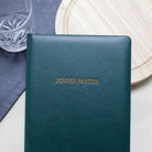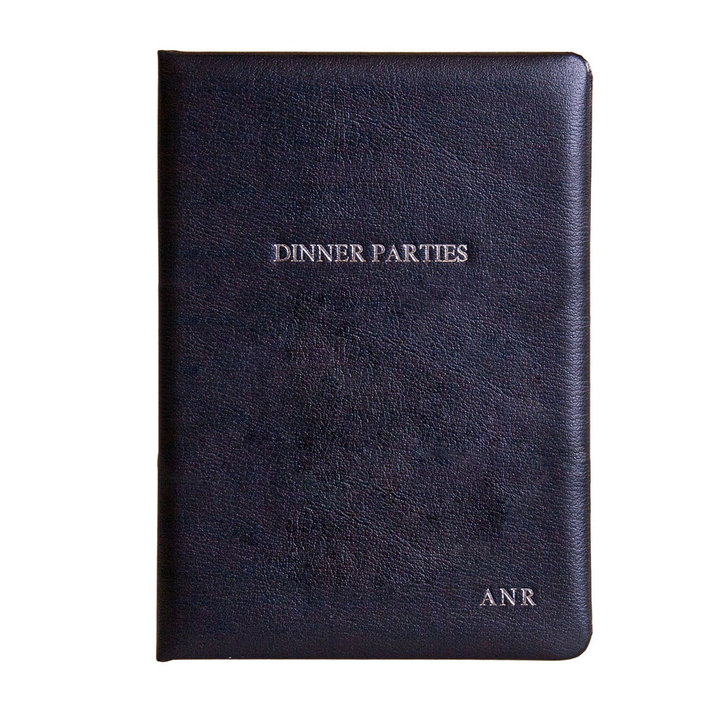 Available in a choice of classic black, rich navy or deep green, each cover is carefully hand-finished and personalised with your initials in the bottom right-hand corner. This personalisation is exquisitely gold foil-stamped, adding a timeless touch of refinement. The centre of the cover carries the text ‘Dinner Parties’ in bold, capital letters, proudly declaring the purpose of this beautiful volume.