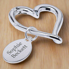 The keyring itself is crafted in the shape of a beating heart, designed with a smooth silver finish that symbolises both love and strength. The clever carabiner mechanism gives it a distinctive edge, simply press down on the clip to open and remove the attached tag or add and organise keys with ease. This design detail not only makes it practical for everyday use but also gives the keyring a subtle contemporary look that stands out from more traditional designs.