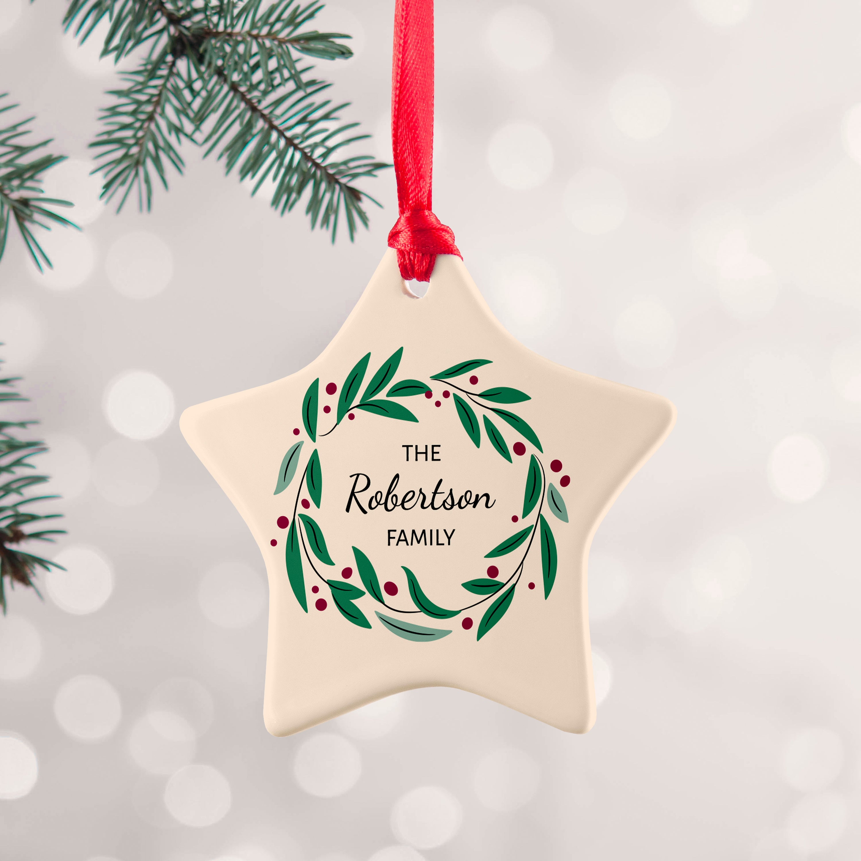 Personalised Baby's First Christmas Wreath Ceramic Tree Decoration
