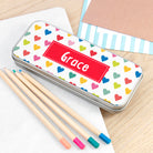 Personalise this pencil case tin with her name, making it a truly one-of-a-kind treasure. This is more than just a stationery holder, it's an expression of her individuality! Her name, along with her chosen pattern, will be expertly printed onto her pencil case’s lid for everyone to see by our fantastic team of creative artisans.
