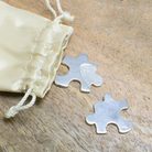 This joining twin puzzle piece set is ideal as a romantic gift for couples or for a partner on any special occasion like Valentine’s, anniversaries or as a romantic Christmas stocking filler. They may be shared between two people as a personal reminder of their bond, kept together and displayed as a symbolic souvenir or given as a thoughtful keepsake marking a significant milestone in a relationship, like a 25th ‘Silver’ Anniversary.
