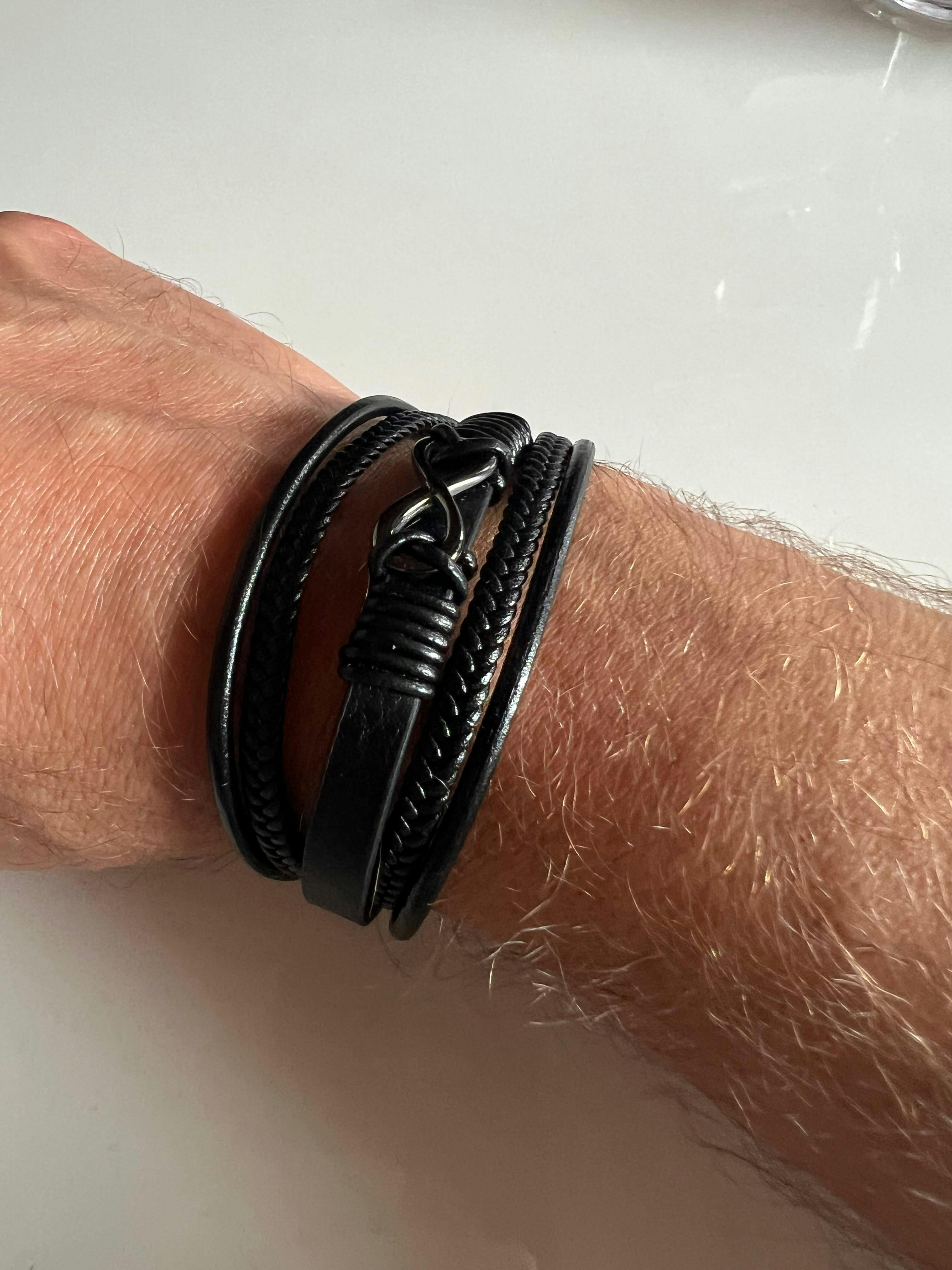 This leather stacked bracelet features a sleek infinity design prominently displayed for all to see - symbolising the enduring and undying bond of love and friendship between you and him. Meanwhile, the timeless black hue adds a touch of allure and versatility, effortlessly complementing any outfit, whether it's a refined evening attire or a casual, laid-back ensemble.