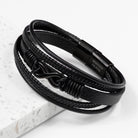 Personalised Men's Infinity Black Leather Stacked Bracelet