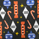 Christmas is such a fun and joyful time of the year! Celebrate in style with our fun Christmas themed luxury wrapping paper featuring Christmas crackers, baubles and candy canes! A bright and bold Christmas design set against a black background - the perfect gift wrap for presents going under the Christmas tree!