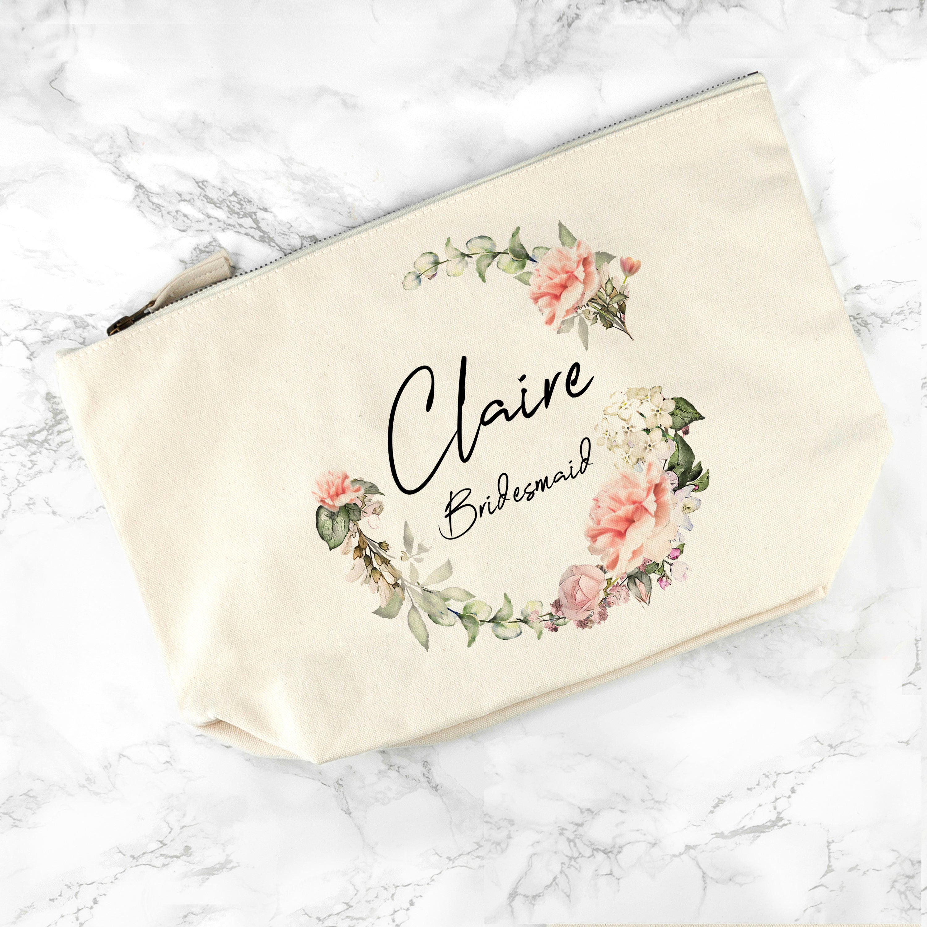 Personalised Bridesmaid Wedding Wreath Cosmetic Bag
