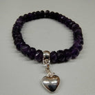 Amethyst Beaded Bracelet with Sterling Silver Heart Charm