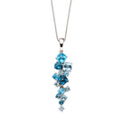 Set in the cool gleam of 9ct white gold, this premium quality necklace showcases a cascading arrangement of dazzling blue topaz gemstones, artfully scattered in a delicate, asymmetrical composition. Each gemstone crystal is uniquely cut, featuring a mix of round, cushion, and pear-shaped stones, to reflect light from every angle, creating a spectacular dance of sparkle and colour.