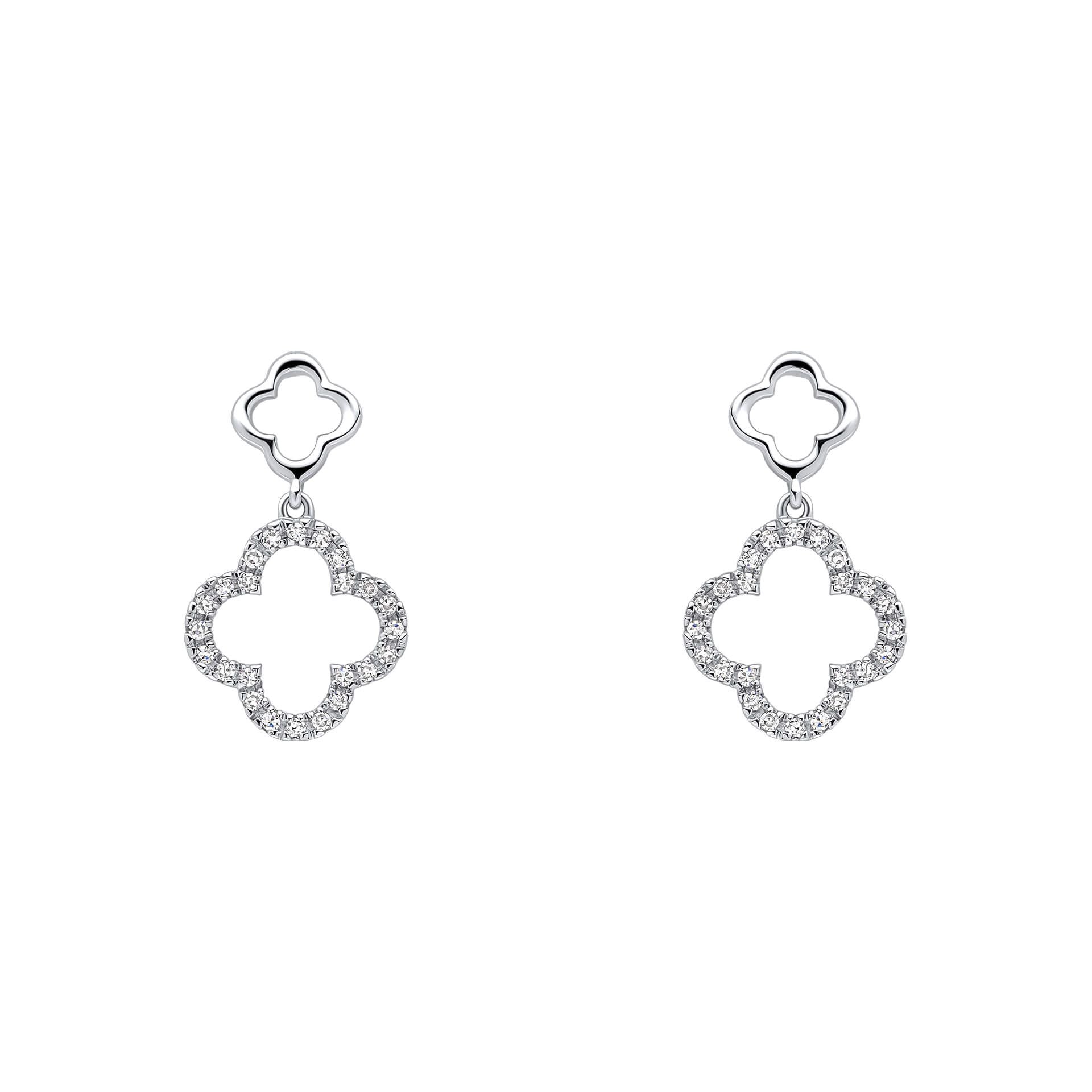 Epitomising a harmonious fusion of historical grandeur and contemporary refinement, these Diamond Quatrefoil Drop Earrings in 9ct White Gold are meticulously crafted to bestow an air of architectural elegance upon the wearer.