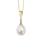 Magnificent in its graceful simplicity, our stunning Freshwater Pearl and Diamond Drop Pendant Necklace in 9ct gold combines the luminous charm of a freshwater pearl with the eternal brilliance of a diamond, creating a jewellery piece that exudes both elegance and sentiment.