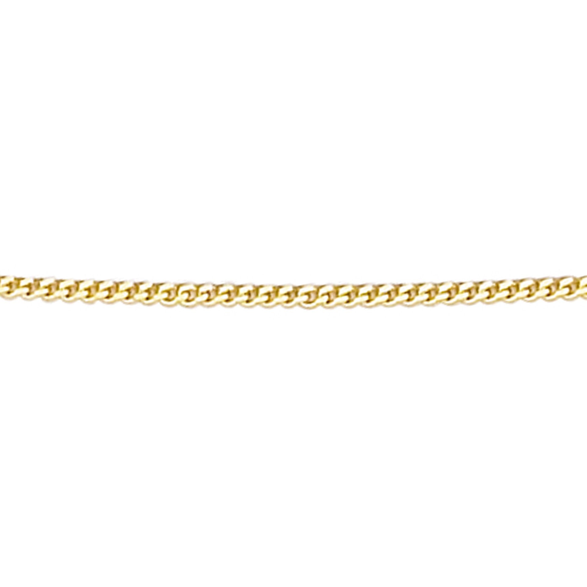 The pendant is suspended from a fine diamond-cut curb chain, delicately crafted in 9ct gold, which shimmers with every movement. Offering an extendable length of 41cm to 46cm, the chain fastens securely with a classic bolt ring clasp and is perfectly suited for both standalone wear and for layering with other 9ct gold necklaces to create a unique and personal style.