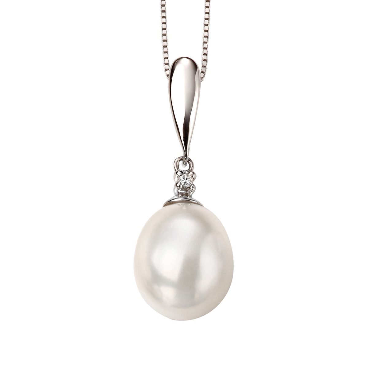 Materials: 9ct Gold, Rhodium Plated, Fresh Water Pearl, Diamond