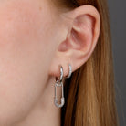Scream Pretty Sterling Silver Safety Pin Crystal Charm Hoop Earrings