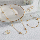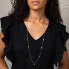 The necklace’s elongated silhouette offers an effortlessly elegant drape, making it perfect for layering over formal dresses, blouses, or eveningwear, while its subtle shimmer ensures it can also elevate everyday ensembles with a touch of sophistication. Lightweight and comfortable to wear, it brings an understated luxury that works beautifully across all contexts.