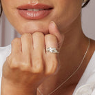 The bottom half of the ring is crafted with a smooth, polished silver band, offering both comfort and a modern finish. Its gentle sheen reflects light with sophistication, ensuring the ring looks equally beautiful from every angle.