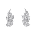 Each earring features a finely sculpted feather, adorned with graceful, flowing lines that echo the print's soft, ethereal movement. The design brings together classic femininity and contemporary sophistication, making these earrings a timeless accessory for women who appreciate elegance in the details. A subtle yet striking row of white cubic zirconia stones is carefully set into the curve of both feathers, adding a shimmering touch of light that enhances their naturalistic form and brings a radiant sparkle with every turn of the head.