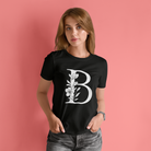Thoughtfully designed with a classic touch, each T-shirt showcases a single, prominent letter of your choice, delicately entwined with blooming florals that evoke the gentle beauty of nature. The floral pattern is subtly artistic, creating a design that’s both eye-catching and effortlessly graceful.