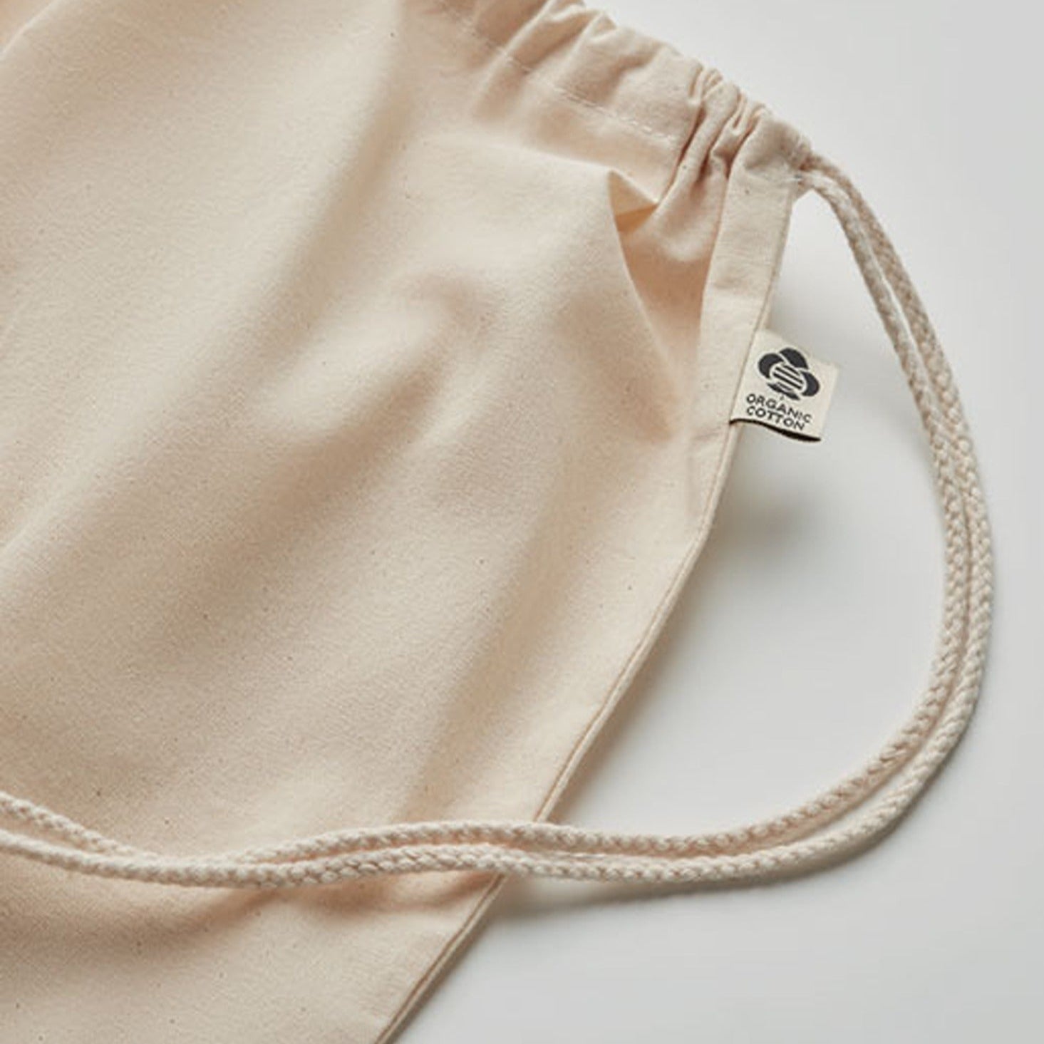 Featuring a classic drawstring closure, this shopping or sports bag is secure and easy to open, while the lightweight design ensures it never weighs you down no matter what you use it for. The organic cotton fabric not only reflects a commitment to sustainable living but also adds an understated elegance to its appearance, making it suitable for all kinds of casual occasions.