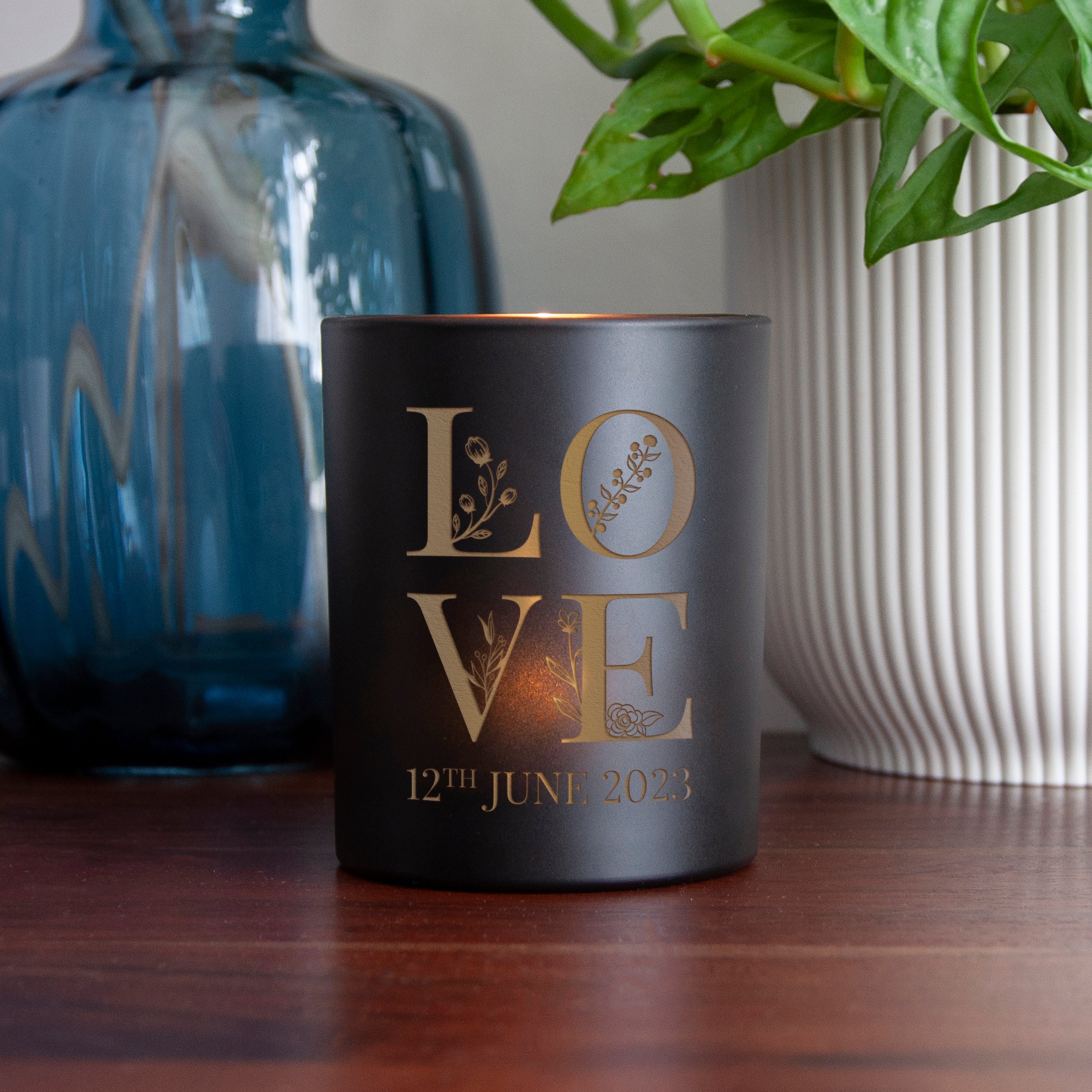 Your candle holder comes adorned with a striking floral ‘LOVE’ motif. Add the couples’ names or a personal message underneath and our outstanding personalisation team will painstakingly engrave it onto your gorgeous glass candle holder, to the highest standard. They’re sure to gain light and radiance from this meaningful present for years to come!