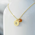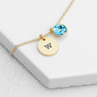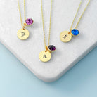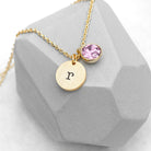 Monogrammed Birthstone Crystal and Disc Gold Necklace